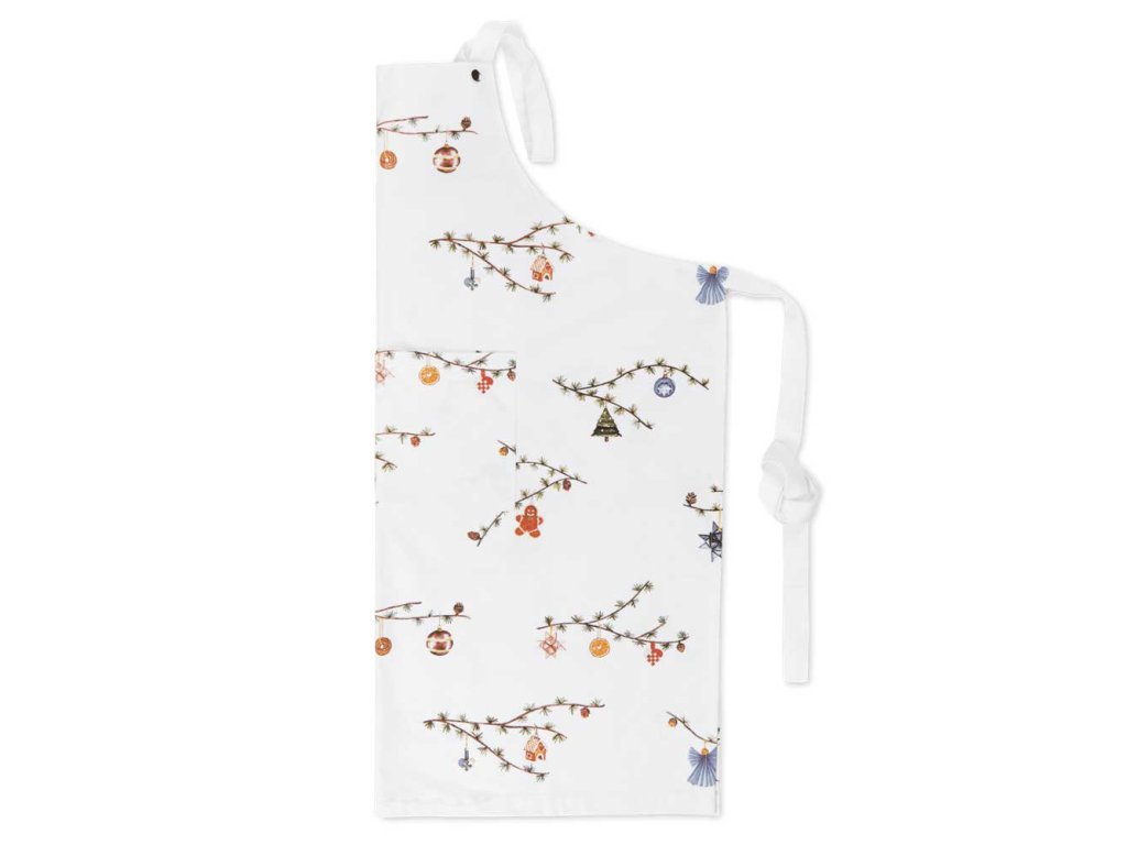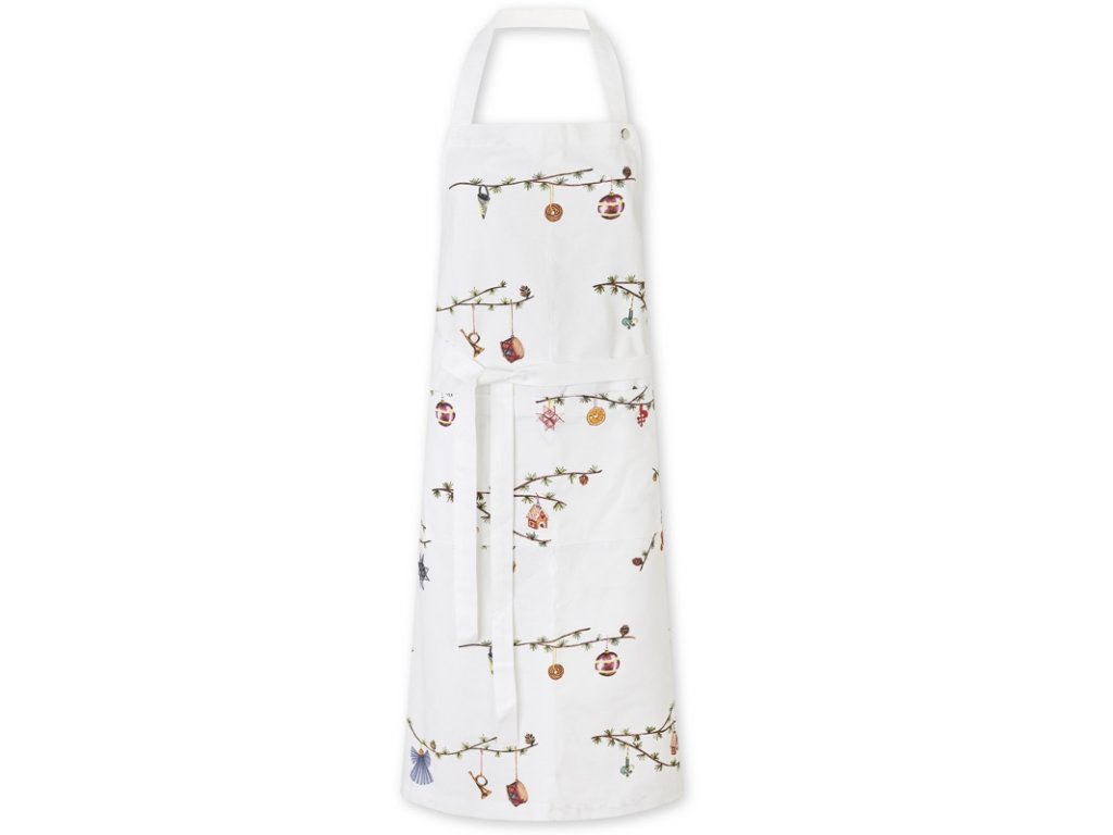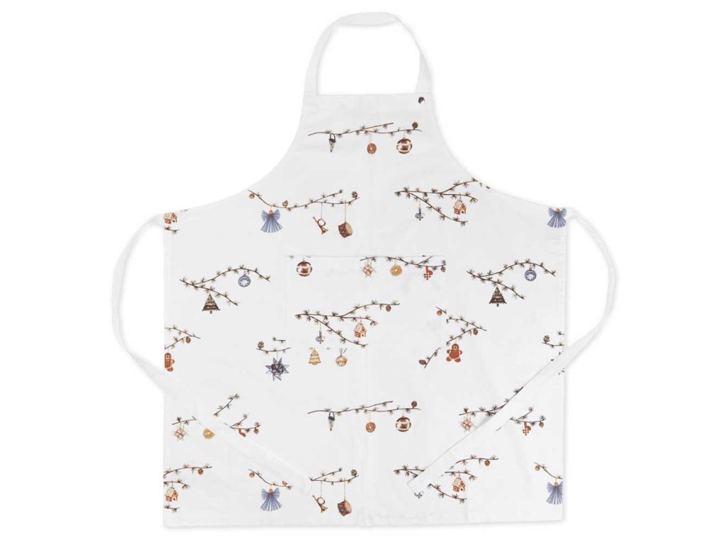 Kolekce Hammershøi Christmas od Kähler se stala velmi oblíbenou pro své typické jemné rýhování, za kterým stojí norský designér Hans-Christian Bauer. Nádherné ilustrace, zobrazující skandinávské vánoční tradice, pak navrhla umělkyně Rikke Jacobsen. Vedle kouzelných váz, svícnů a jídelních setů, zde také objevíte nádherné dekorativní ozdoby, včetně svátečního textilu. Blýskněte se během vánočních příprav touto úchvatnou zástěrou s pohádkově krásnými motivy. Zástěra je vyrobena ze 100% organické bavlny a je opatřena knoflíčkem, díky kterému je popruh kolem krku nastavitelný.