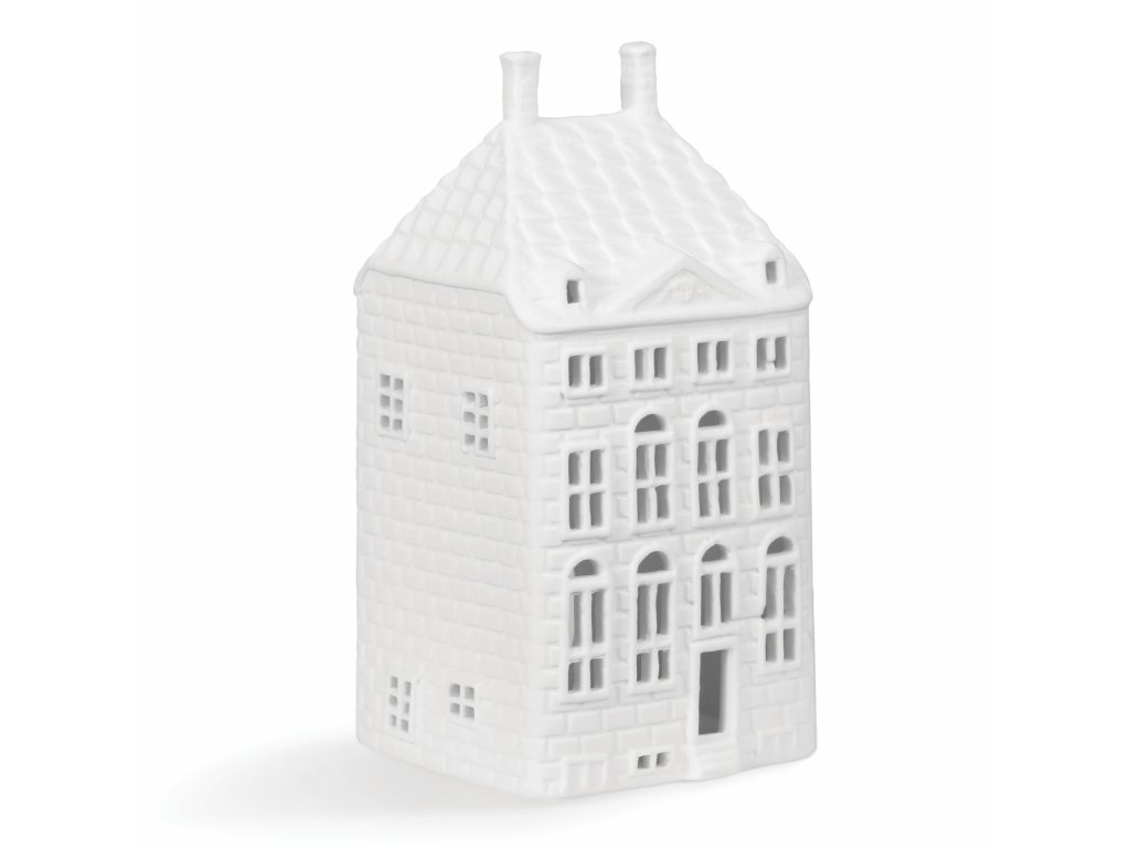 Svícny Canal House v podobě malebných domků z bílého porcelánu přenesou do vašeho domova kousek kouzla romantických uliček Amsterdamu. Každý domeček s matným povrchem a ručně propracovanými detaily působí jako drobná architektonická miniatura – s okny, schody i střechami, které se v teplém světle čajové svíčky rozzáří a vytvoří hřejivou atmosféru.