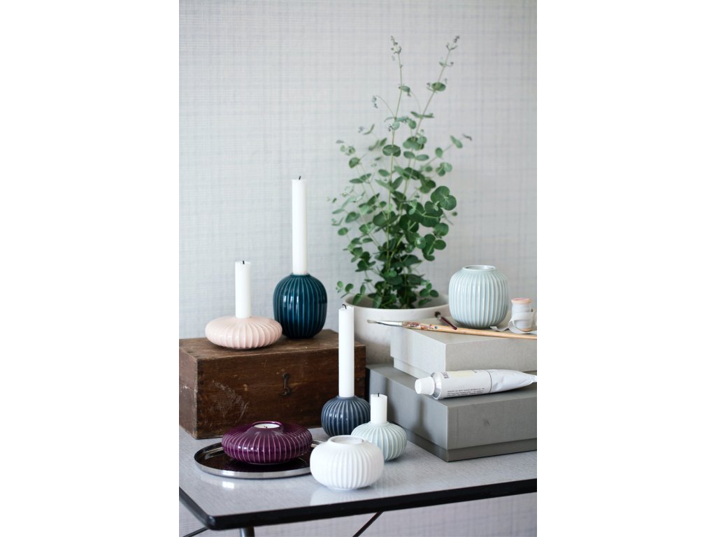Kolekce Hammershøi od Kähler se stala velmi oblíbenou pro své typické jemné rýhování, za kterým stojí norský designér Hans-Christian Bauer. Objevíte zde nádherné svícny různých barev a velikostí, které se vzájemně perfektně doplňují a díky tomu můžete vytvořit jedinečnou kombinaci pro váš domov. Svícny z kolekce Hammershøi dodají vašemu domovu tu pravou skandinávskou eleganci a spolehlivě vykouzlí sváteční atmosféru. Keramické svícny jsou vyráběny jak pro svíčky čajové, tak i pro dlouhé a úzké svíce. Obě varianty najdete v naší nabídce.