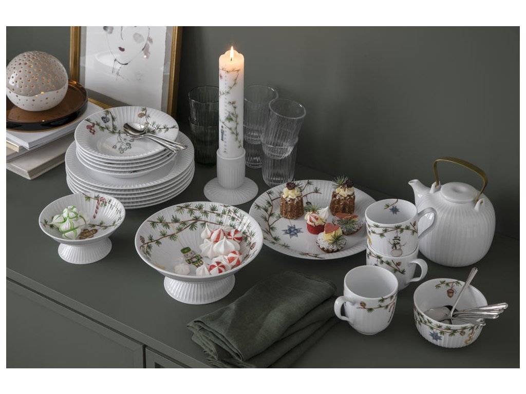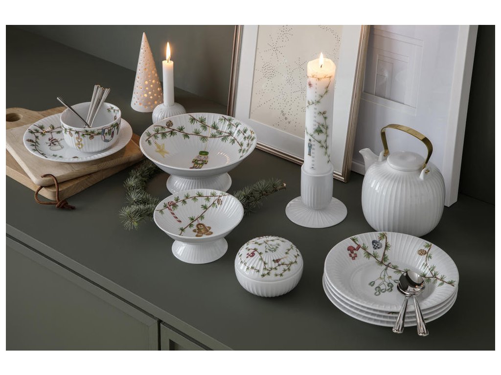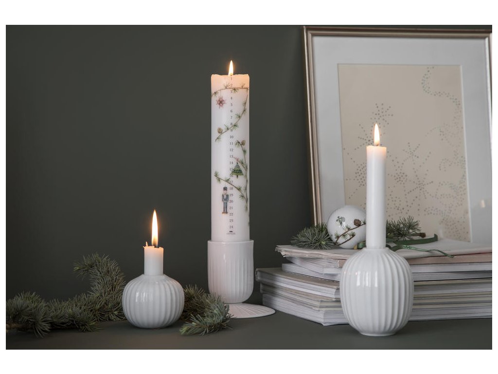 Kolekce Hammershøi Christmas od Kähler se stala velmi oblíbenou pro své typické jemné rýhování, za kterým stojí norský designér Hans-Christian Bauer. Nádherné ilustrace zobrazující skandinávské vánoční tradice pak navrhla umělkyně Rikke Jacobsen. Vedle kouzelných váz a svícnů zde také objevíte nádherný jídelní set, se kterým bude radost připravovat hostinu pro nejbližší přátele nebo rodinu. Svícen Hammershøi Block je určen pro širší svíčky s průměrem 5 cm. O Vánocích dodá vašemu domovu tu pravou skandinávskou eleganci a sváteční atmosféru.