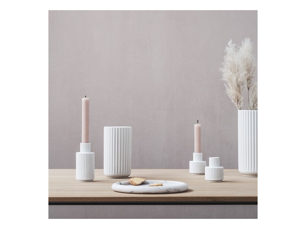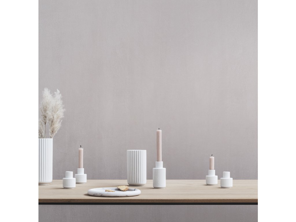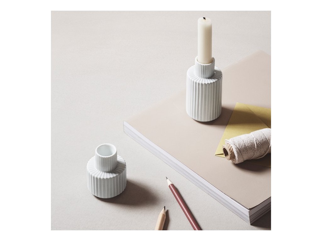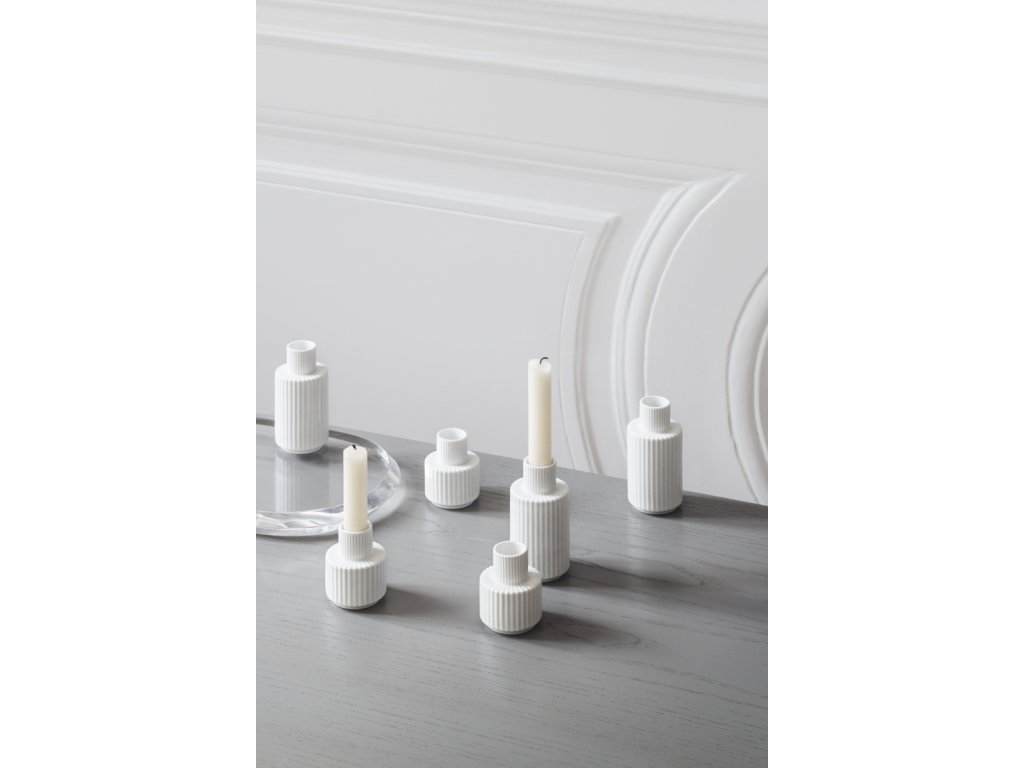 Lyngby Porcelæn díky precizní ruční výrobě, vysoké kvalitě a nádhernému čistému stylu patří k nejvyhledávanějším bytovým doplňkům. Unikátní linie odkazují k tradiční dánské keramice z 30. let 20. století a zároveň dokonale propojují moderní provedení a funkčnost. Tento design nebyl nikdy zapomenut a jeho otisk se dnes odráží v každém kousku. Lyngby porcelán se stal skutečnou ikonou bytového designu.Svícen je určen pro dlouhé a úzké svíčky. Pro Lyngby ho navrhla talentovaná produktová designérka Cecilie Toklum. Je vyroben v bílém provedení s lesklou glazurou a typickými rýhami, které jsou nedílnou součástí jedinečného vzhledu porcelánu Lyngby. Svícen vypadá skvěle v doprovodu váz Lyngby.