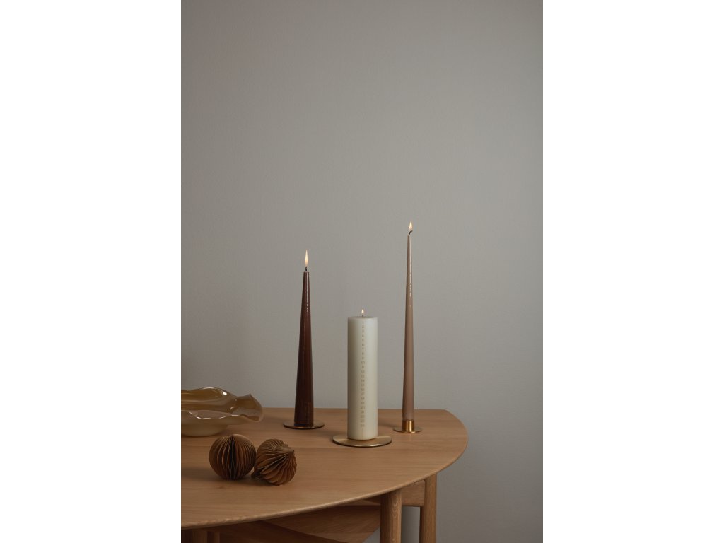Svícen Plate nechává vyniknout pravou krásu originálního designu a eleganci svíček. Jako povrchovou úpravu používá Ester&Erik PVD, nový ekologický způsob potahování kovů, který zároveň poskytuje vynikající kvalitu a odolnost. Umístěte svícen na konferenční stolek nebo na slavnostně prostřený stůl, kombinujte svícny a svíčky různých barev a vneste tak do svého domova svůj osobitý styl.
