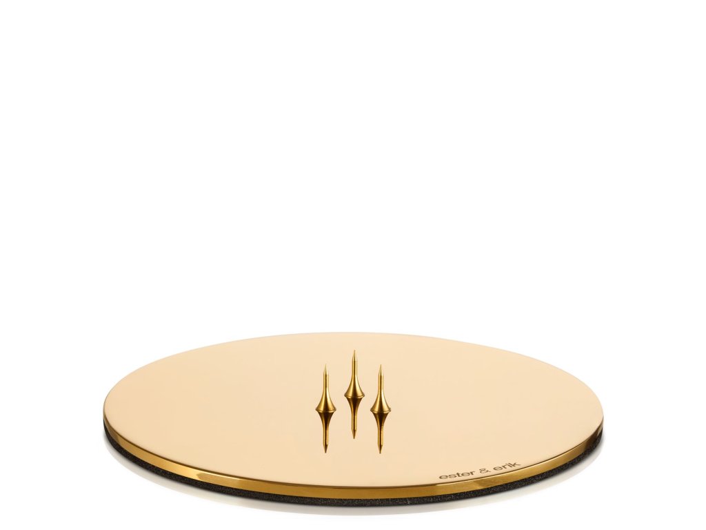 Svícen Plate nechává vyniknout pravou krásu originálního designu a eleganci svíček. Jako povrchovou úpravu používá Ester&Erik PVD, nový ekologický způsob potahování kovů, který zároveň poskytuje vynikající kvalitu a odolnost. Umístěte svícen na konferenční stolek nebo na slavnostně prostřený stůl, kombinujte svícny a svíčky různých barev a vneste tak do svého domova svůj osobitý styl.
