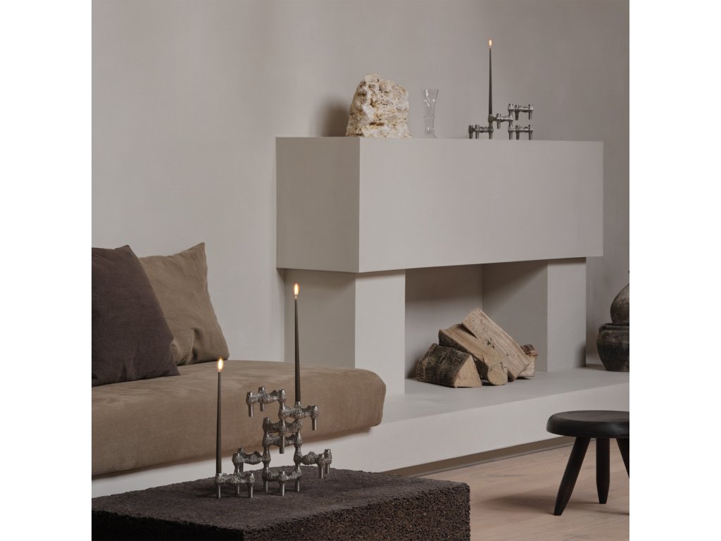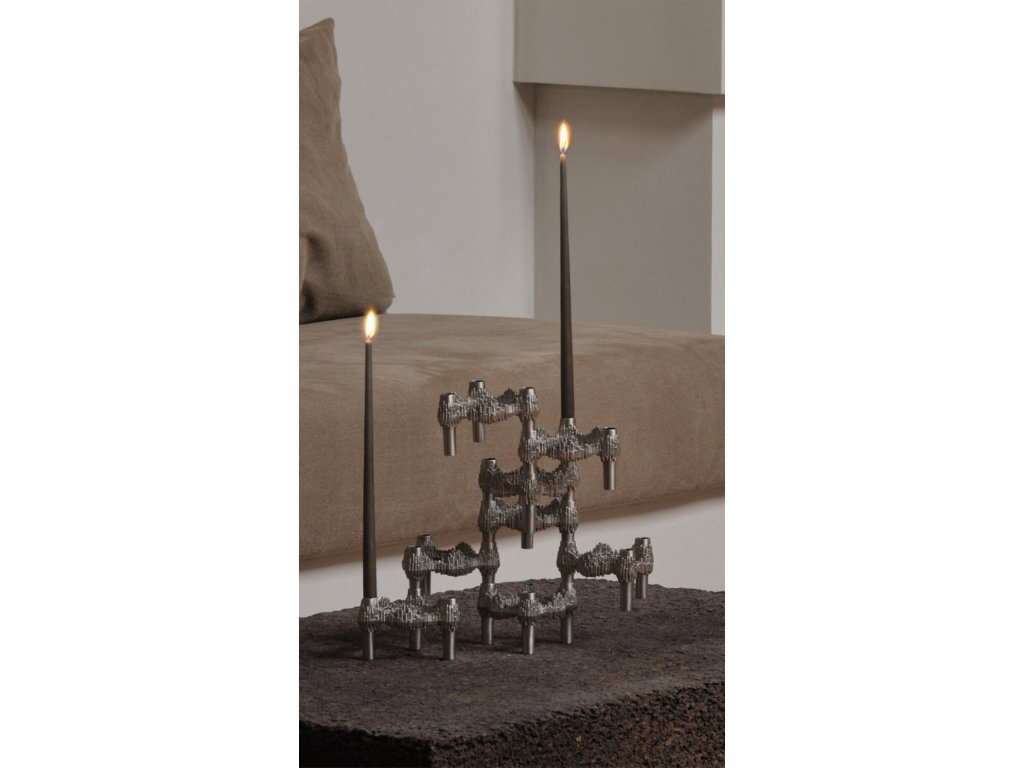 Stejně jako ostatní svícny STOFF Nagel, i Quist nabízí nekonečné možnosti díky modulárnímu designu. Jednotlivé části lze libovolně kombinovat, stohovat a rozšiřovat, čímž vznikají pokaždé nové a jedinečné kompozice. Můžete jej používat s úzkými kuželovitými svíčkami o průměru 1,3 cm, zkombinovat s dalšími doplňky kolekce nebo jej nechat zazářit samostatně jako výrazný sochařský objekt. Každá sestava je unikátní, protože konečná podoba svícnu záleží jen na vaší fantazii.
