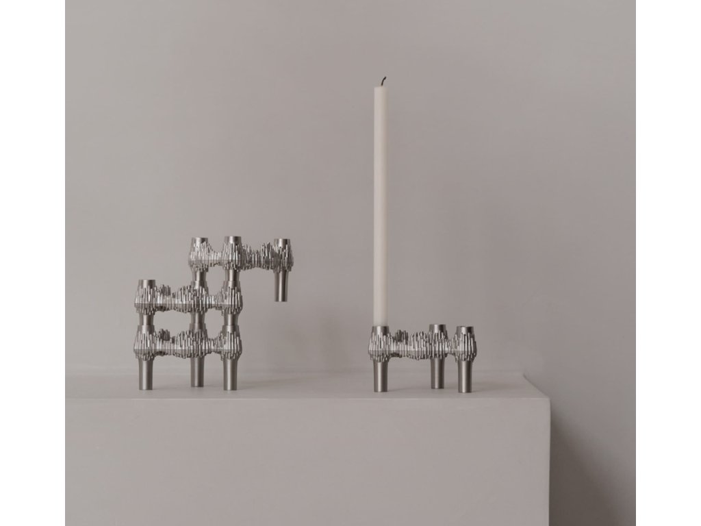 Svícen STOFF Nagel je víc než jen svícen – je to objekt, který si hraje s prostorem, světlem a tvarem. Díky své stohovatelnosti a kombinovatelnosti nabízí nekonečné možnosti variací, a tak si každý může vytvořit vlastní sochu z lesklého kovu, přesně podle své nálady i vkusu. Dnes značka rozšiřuje svou kolekci o další výrazné kousky – od váz a mís až po svícny a svíčky ladící s původní estetikou. Minimalismus, geometrie a elegance jsou zde stále přítomny, ale nově získávají i současný nádech. STOFF Nagel je zkrátka poctou nadčasovému designu, který má sílu oslovit generace – tehdy, dnes i zítra.