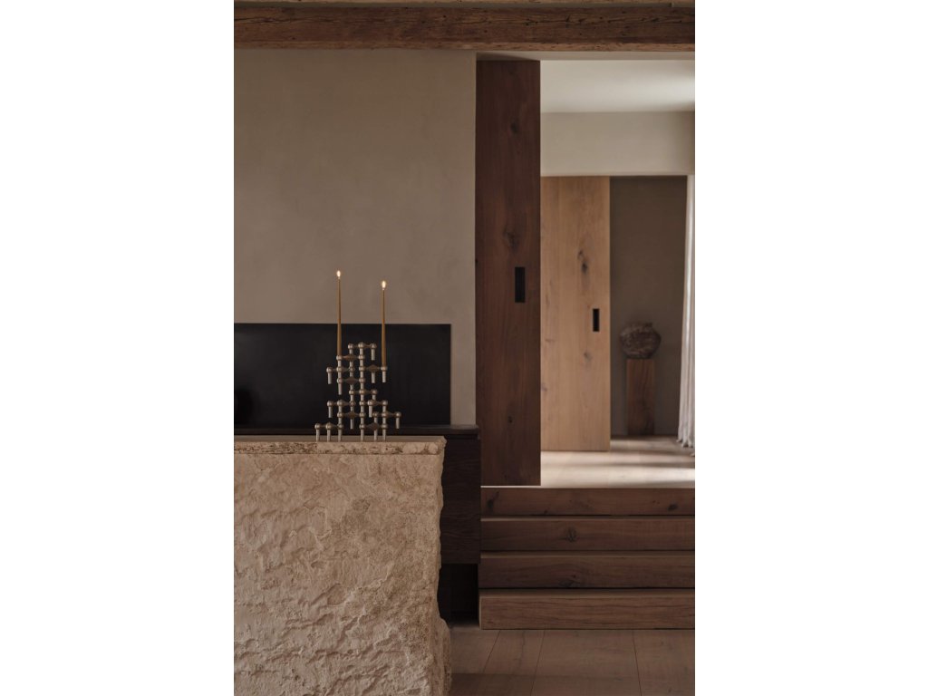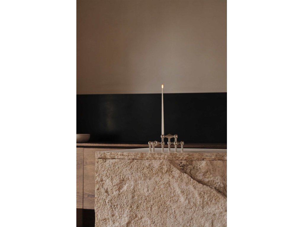 Díky modulárnímu designu nabízí svícen nekonečné možnosti. Jednotlivé části můžete libovolně stohovat, kombinovat a přeskupovat, čímž vznikají stále nové a originální kompozice, které dokonale odrážejí vaši fantazii. Používejte jej s úzkými kuželovitými svíčkami o průměru 1,3 cm, doplňte miskou, stojanem či vázou ze stejné kolekce, nebo jej nechte zazářit samostatně jako sochařský objekt.