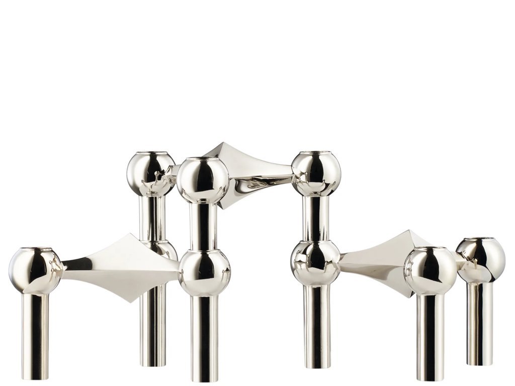 Ikonický svícen STOFF Nagel v provedení lesklý chrom je nadčasovým doplňkem, který v sobě spojuje funkčnost, sochařskou krásu i kus světové designové historie. Jeho příběh se začal psát v 60. letech, kdy se Hans Nagel spojil s architektem a designérem Wernerem Stoffem. Společně vytvořili svícen, který dokázal překročit hranice běžného interiérového doplňku – stal se osobním prohlášením, symbolem estetiky a kreativity.