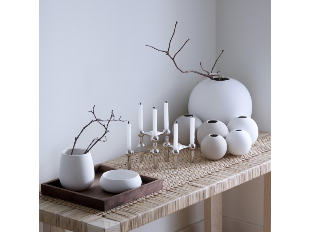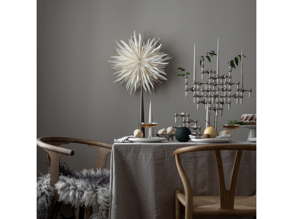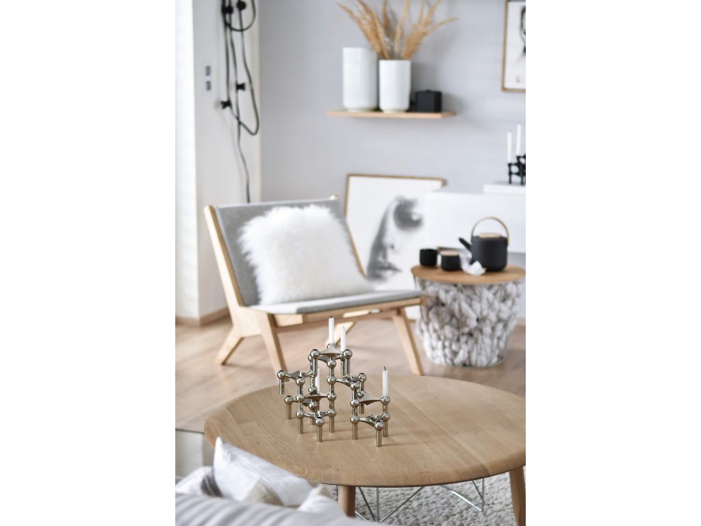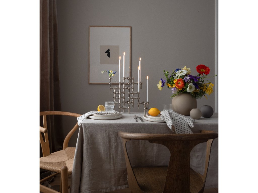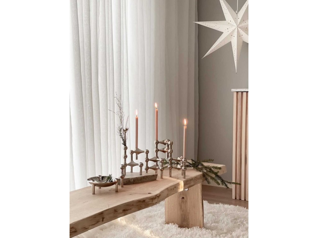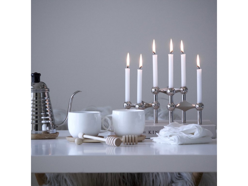 Díky modulárnímu designu nabízí svícen nekonečné možnosti. Jednotlivé části lze stohovat, kombinovat a přeskupovat, takže pokaždé vznikají nové a originální kompozice, jež odrážejí vaši vlastní fantazii. Lze jej používat s úzkými kuželovitými svíčkami o průměru 1,3 cm, zkombinovat s miskou, stojanem či vázou ze stejné kolekce, nebo jej nechat zazářit samostatně jako čistě dekorativní objekt.