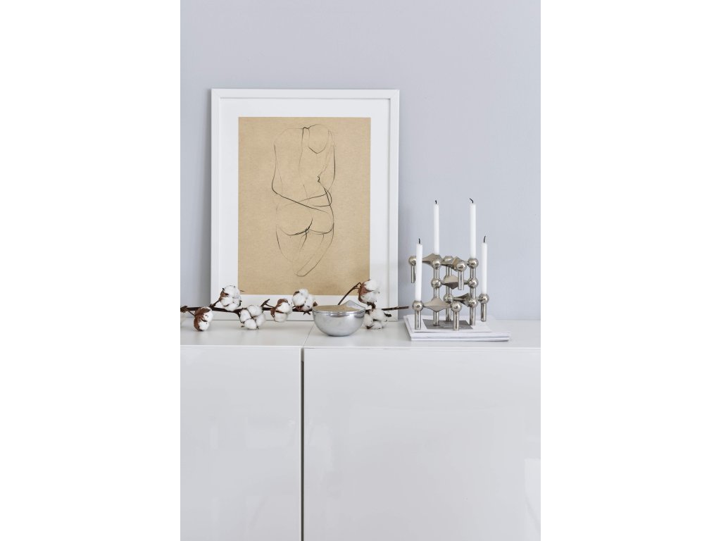Lesklý chrom dodává svícnu elegantní, moderní a zrcadlový výraz, díky němuž vynikne v minimalistických i klasických interiérech. Povrch odráží světlo i okolní prostor, čímž podtrhuje jeho dramatickou a sochařskou estetiku.