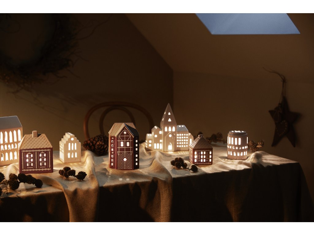 Kouzelná chaloupka z cukrové polevy a perníku, kterého se nikdy nepřejíte. To je dokonalý počin slavného designerského dua R7B Mette Bache a Barbary Bendix Becke z Kodaně. Obě mají úžasný cit vdechnout starým předmětům nový život v moderním pojetí. Jejich vášeň pro dánský design je dovedla až k firmě Kähler, pro kterou vytvořily překrásnou kolekci svícnů Nobili a Urbania. Série Urbania je inspirována především designem budov. Každý domeček má ručně vyřezávaná okénka, skrz která prosvítá jemné světlo čajové svíčky.