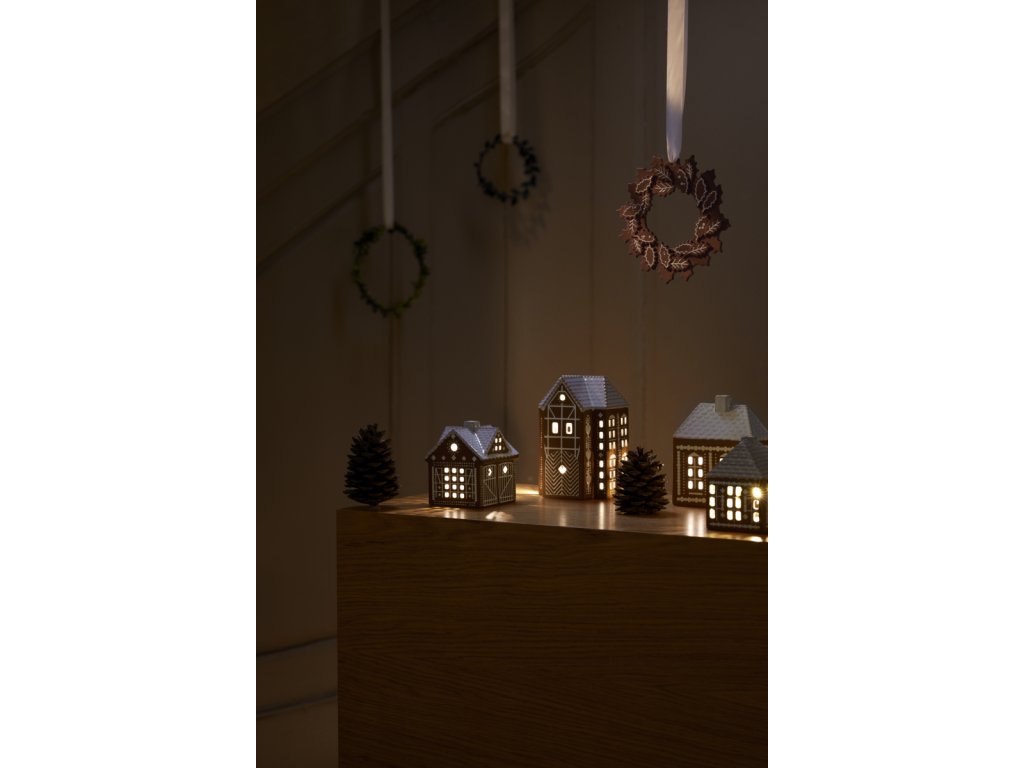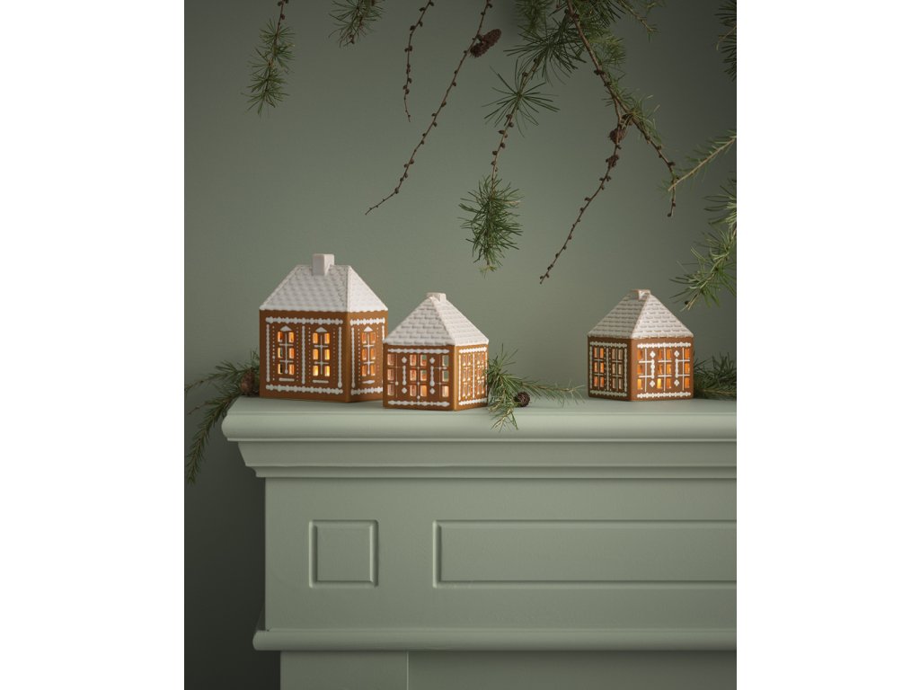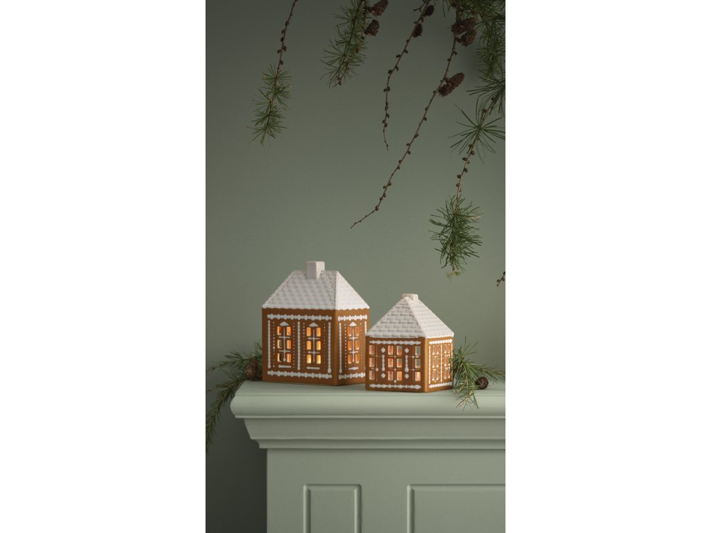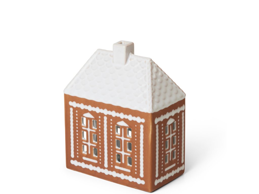 Perníková chaloupka Urbania Gingerbread snoubí typickou vánoční klasiku s precizním ručním designem. Chaloupka má matný, skořicově hnědý zevnějšek, připomínající perník. Střechu a vnitřek zdobí lesklá bílá glazura, která odráží teplé světlo z plamene svíčky a krášlí jím tak své okolí. Ozdobte chaloupkou okenní parapet v obývacím pokoji, polici v dětském pokojíčku nebo jej volně rozestavte vedle zapáleného krbu. Pohádková chaloupka u vás doma navodí kouzelnou atmosféru a zahalí celý pokoj do sváteční atmosféry.