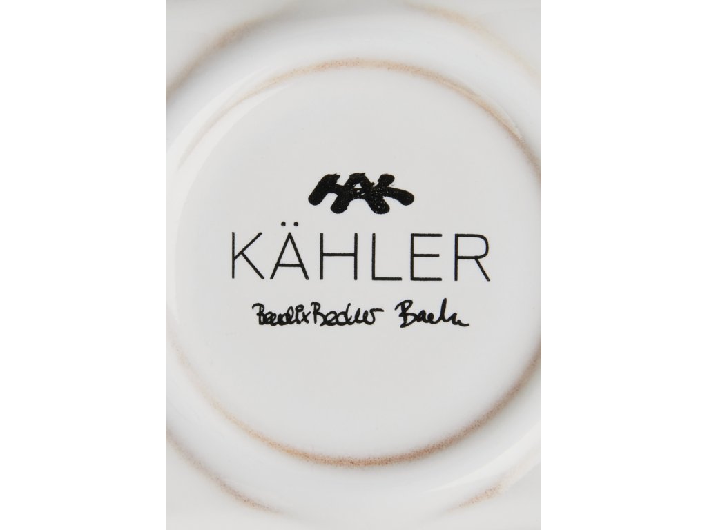 Kähler spojuje tradici, precizní ruční výrobu a nadčasovou estetiku, která odolává pomíjivým trendům. Každý kus nese logo HAK – monogram zakladatele, který připomíná hluboké kořeny značky a její úctu k historii. Dnes je značka Kähler známá především svými uměleckými vázami, keramickými svícny, hrníčky a doplňky, které v sobě nesou jak eleganci, tak originalitu. Každý produkt je ručně vyroben s maximální péčí – a právě to mu dodává duši. Styl Kähleru je jemný, harmonický, s charakteristickými liniemi a glazurami, které lahodí oku. Je to keramika, která nestárne, a kterou si zamilujete na celý život.