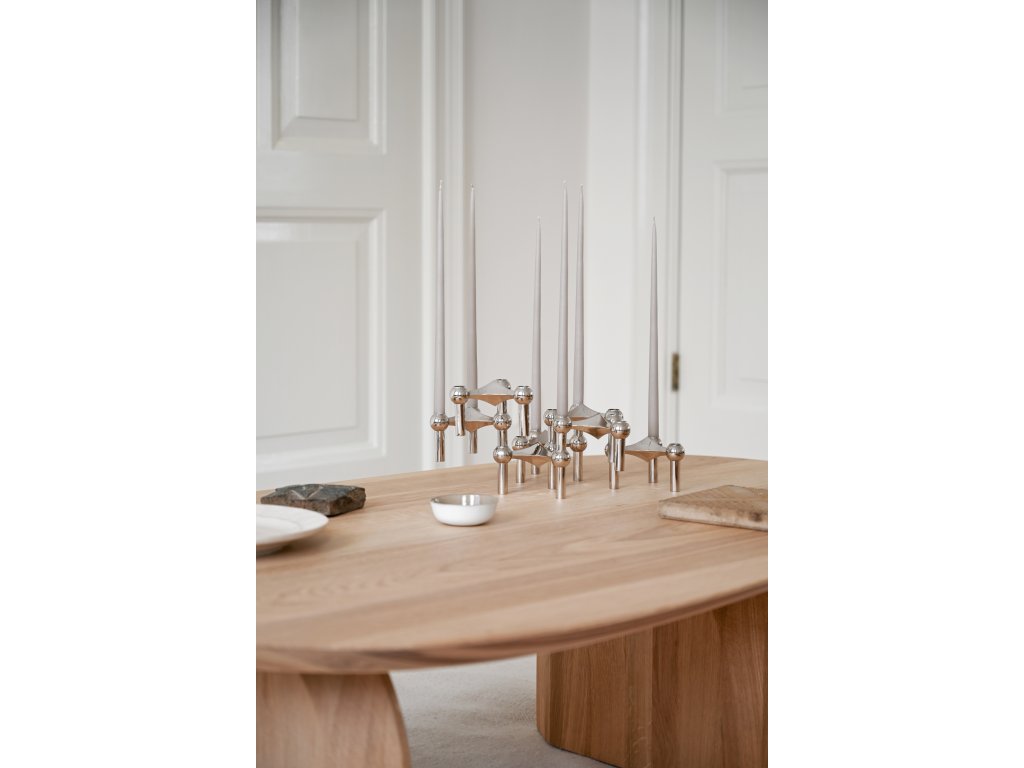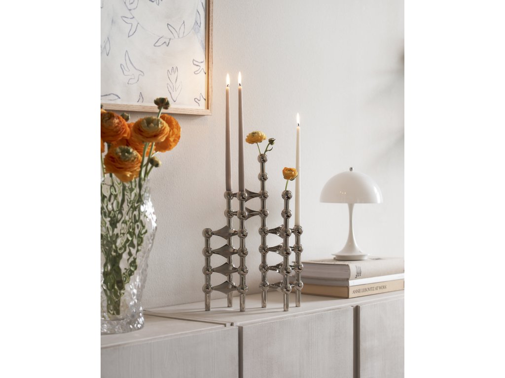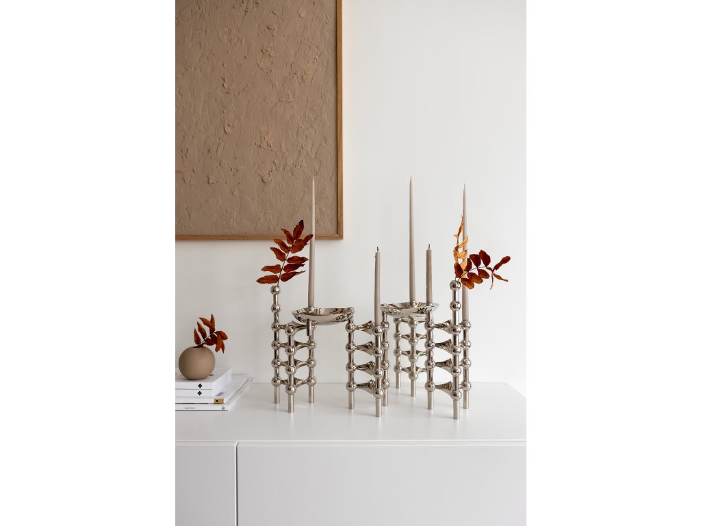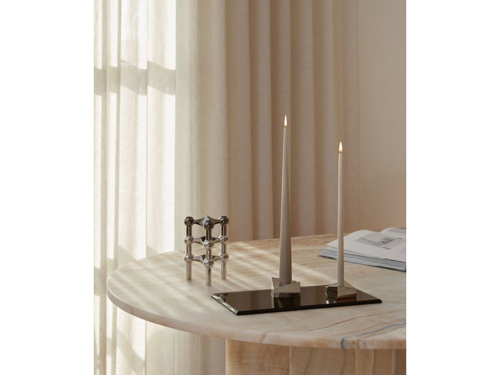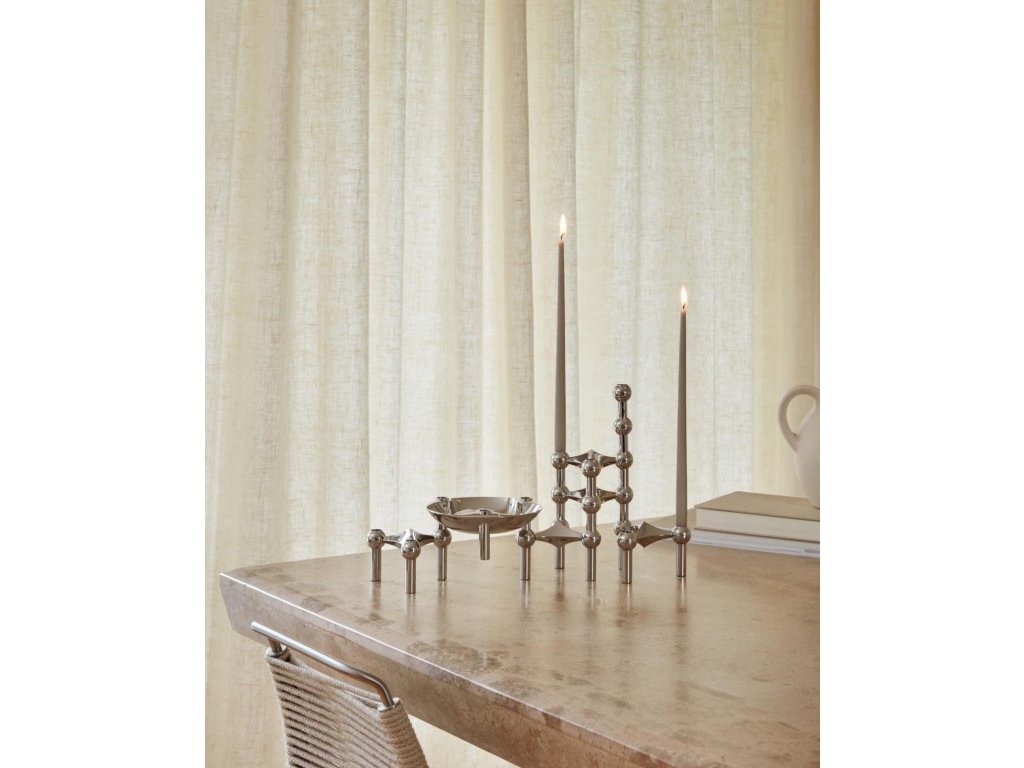 Svícen STOFF Nagel je víc než jen svícen – je to objekt, který si hraje s prostorem, světlem a tvarem. Díky své stohovatelnosti a kombinovatelnosti nabízí nekonečné možnosti variací, a tak si každý může vytvořit vlastní sochu z lesklého kovu, přesně podle své nálady i vkusu. Dnes značka rozšiřuje svou kolekci o další výrazné kousky – od váz a mís až po svícny a svíčky ladící s původní estetikou. Minimalismus, geometrie a elegance jsou zde stále přítomny, ale nově získávají i současný nádech. STOFF Nagel je zkrátka poctou nadčasovému designu, který má sílu oslovit generace – tehdy, dnes i zítra.