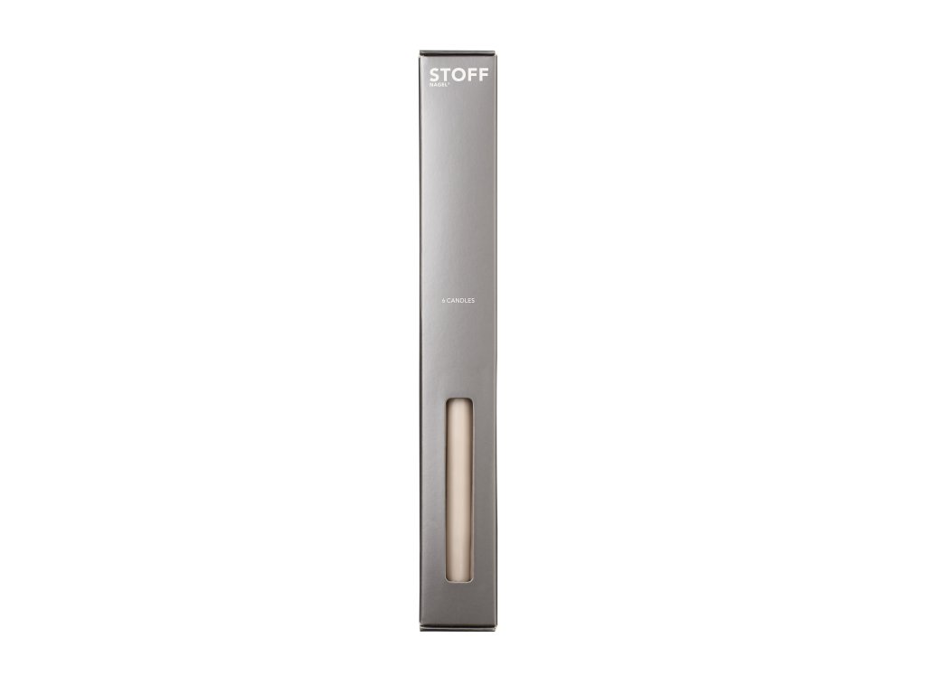 Unikátní svíčky STOFF od dánské značky Ester & Erik jsou symbolem elegance, tradice a dokonalého řemesla. Mají štíhlý, jemně zúžený tvar o průměru 1,3 cm, který dokonale ladí se svícny STOFF Nagel X1 a X3. Jejich plamen hoří klidně a pomalu, svíčky nekapou, samozháší a dohořívají až do konce bez zbytečných zbytků vosku, které by narušily čistou linii svícnu.