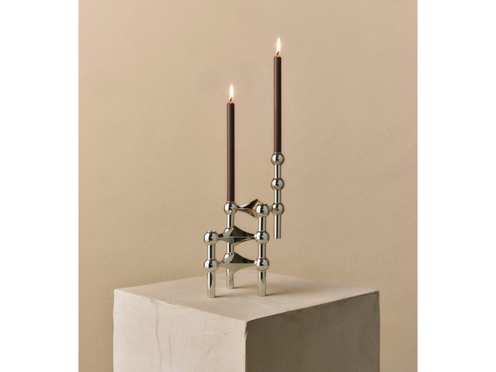 Svícen STOFF Nagel je víc než jen svícen – je to objekt, který si hraje s prostorem, světlem a tvarem. Díky své stohovatelnosti a kombinovatelnosti nabízí nekonečné možnosti variací, a tak si každý může vytvořit vlastní sochu z lesklého kovu, přesně podle své nálady i vkusu. Dnes značka rozšiřuje svou kolekci o další výrazné kousky – od váz a mís až po svícny a svíčky ladící s původní estetikou. Minimalismus, geometrie a elegance jsou zde stále přítomny, ale nově získávají i současný nádech. STOFF Nagel je zkrátka poctou nadčasovému designu, který má sílu oslovit generace – tehdy, dnes i zítra.