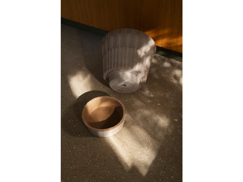 Terakotový květináč Atlas od dánské značky Bergs Potter představuje propojení funkčnosti a estetiky inspirované architekturou dávných civilizací. Jeho reliéfní struktura s jemně rýhovaným povrchem připomíná vrstevnaté skály a sloupy starověkého světa – silné, stabilní a zároveň krásně dekorativní. V minimalistickém pojetí působí přirozeně a nadčasově. Design květináče Atlas odkazuje na mýtického Titána Atlase, který podle řecké mytologie nesl na svých bedrech tíhu nebes. Pravidelný kruhový vzor s vertikálními liniemi symbolizuje neúnavné a věčné úsilí, stejně jako Atlasova neochvějná síla a vytrvalost. Květináč je navržen tak, aby odolával zubu času a při správné péči sloužil po mnoho let.
