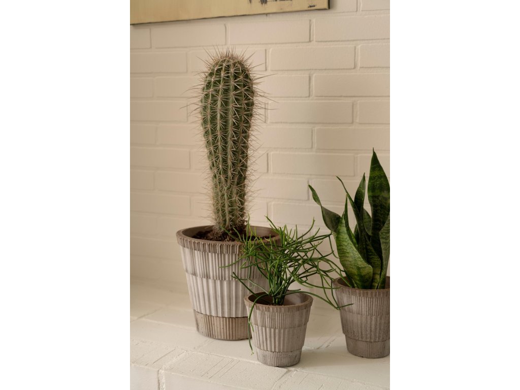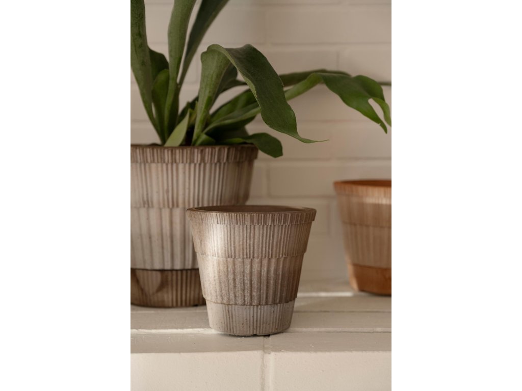S průměrem 14 cm a výškou 13 cm je ideální pro středně velké pokojové rostliny, sukulenty, bylinky i menší kaktusy. Skvěle vynikne jak na okenním parapetu, tak na polici nebo venkovním stole. Odstín Raw Grey kombinuje chladivý šedý tón s jemnou patinou, která se s časem ještě prohlubuje a dodává květináči autentický charakter.