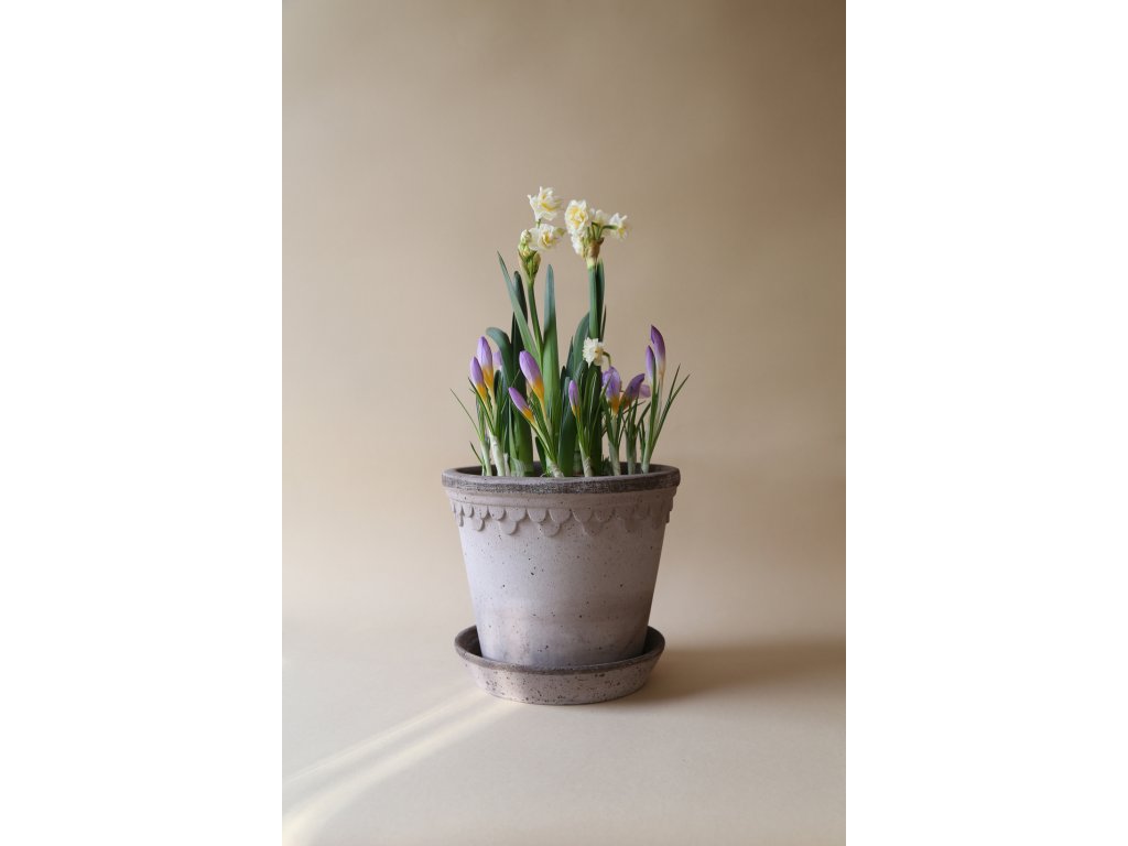 Květináč Copenhagen od značky Bergs Potter je drobný klenot, který okouzlí svým jemným dekorem a přirozenou elegancí. Tvarově vychází z historického originálu nalezeného v srdci Kodaně a jeho dekorativní lem s typickými zaoblenými obloučky připomíná architekturu starých městských domů. V odstínu Raw Grey působí klidně a sofistikovaně, takže krásně vynikne v každém interiéru i na zahradě.