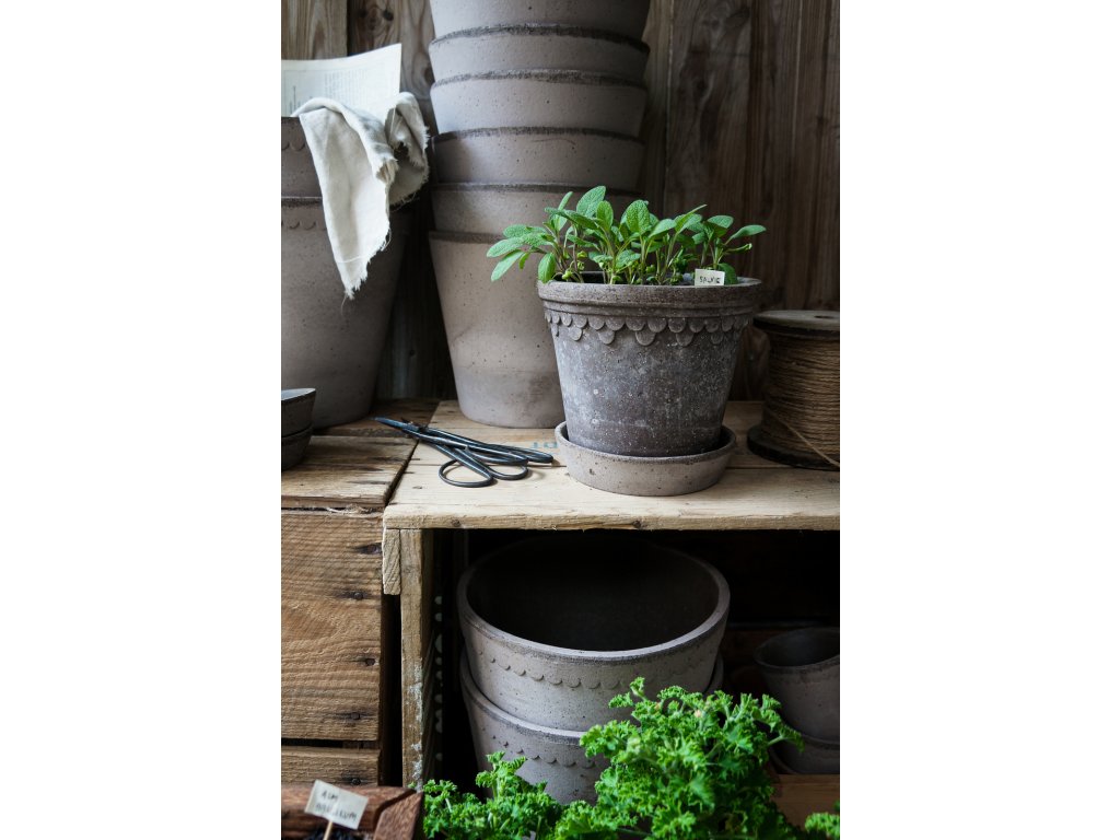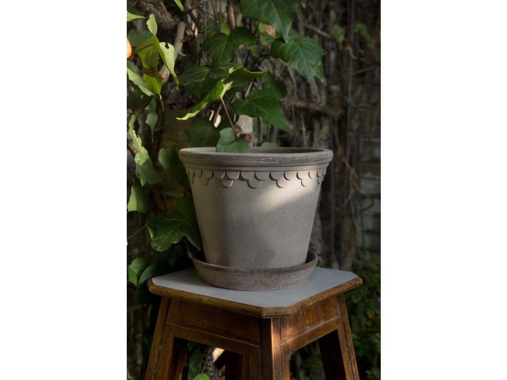 Jeho dekorativní lem se zaoblenými obloučky připomíná architekturu starých městských domů a dodává květináči nadčasový charakter. V šedohnědém odstínu Raw Grey působí klidně a sofistikovaně, skvěle zapadne do interiéru i venkovního prostředí. Každý kus je ručně vyráběn z prvotřídní italské terakoty v malých rodinných dílnách, kde se staré řemeslo předává z generace na generaci. Květináč je neglazovaný a jemně porézní – kořeny rostlin v něm mohou přirozeně dýchat, a časem získává krásnou patinu, která podtrhuje jeho jedinečný charakter. Díky drenážnímu otvoru a podmisce je vhodný i pro celoroční venkovní použití, včetně zimních měsíců.