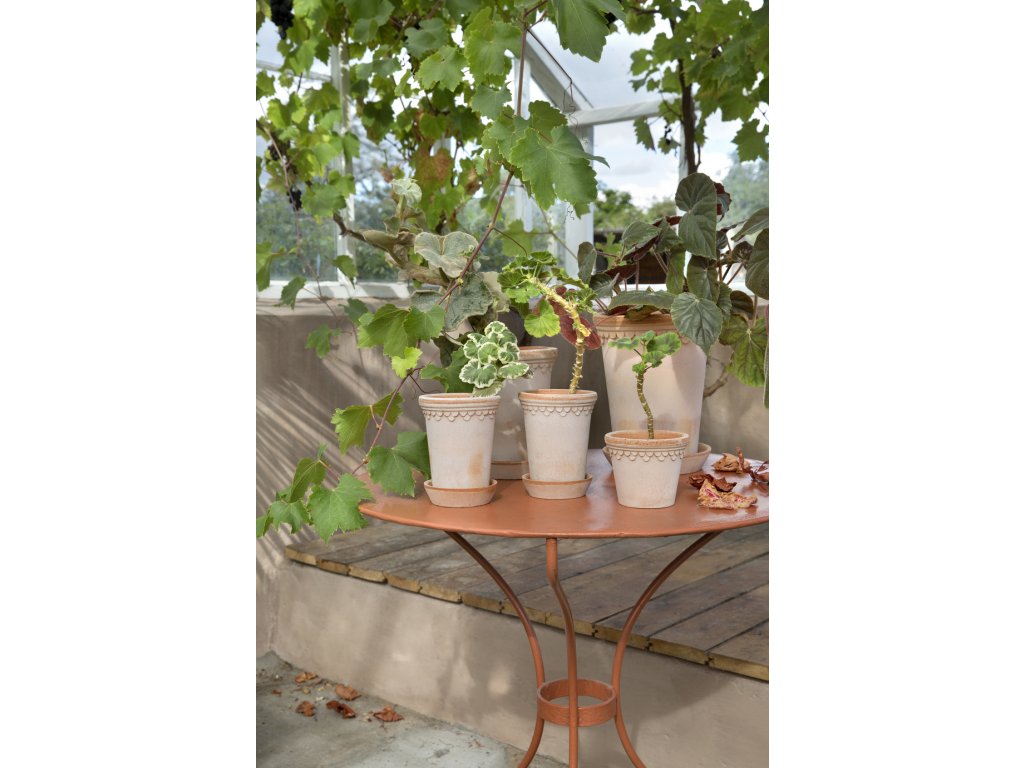 Vyroben ručně z prvotřídní italské terakoty, květináč je neglazovaný, a tedy prodyšný – kořeny rostlin v něm dýchají a rostou přirozeným tempem. Oranžovorůžový povrch je mírně porézní a s časem získává jemnou patinu, díky které má každý kus svůj osobitý výraz. Díky odtokovému otvoru a podmisce je Copenhagen vhodný i pro venkovní použití, a to po celý rok, včetně chladných měsíců.