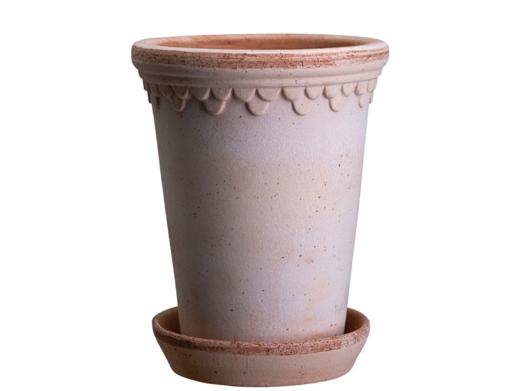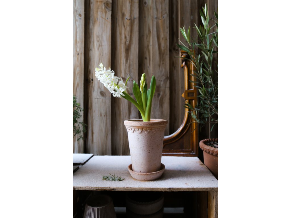 Květináč Copenhagen Tall od značky Bergs Potter je drobný klenot, který okouzlí svým jemným dekorem a přirozenou elegancí. Tvarově vychází z historického originálu nalezeného v srdci Kodaně, a jeho typický dekorativní lem s obloučky připomíná architekturu starých městských domů. V oranžovorůžovém odstínu Raw Rosa působí klidně a sofistikovaně – krásně tak zapadne jak do interiéru, tak na terasu, balkon či zahradu.