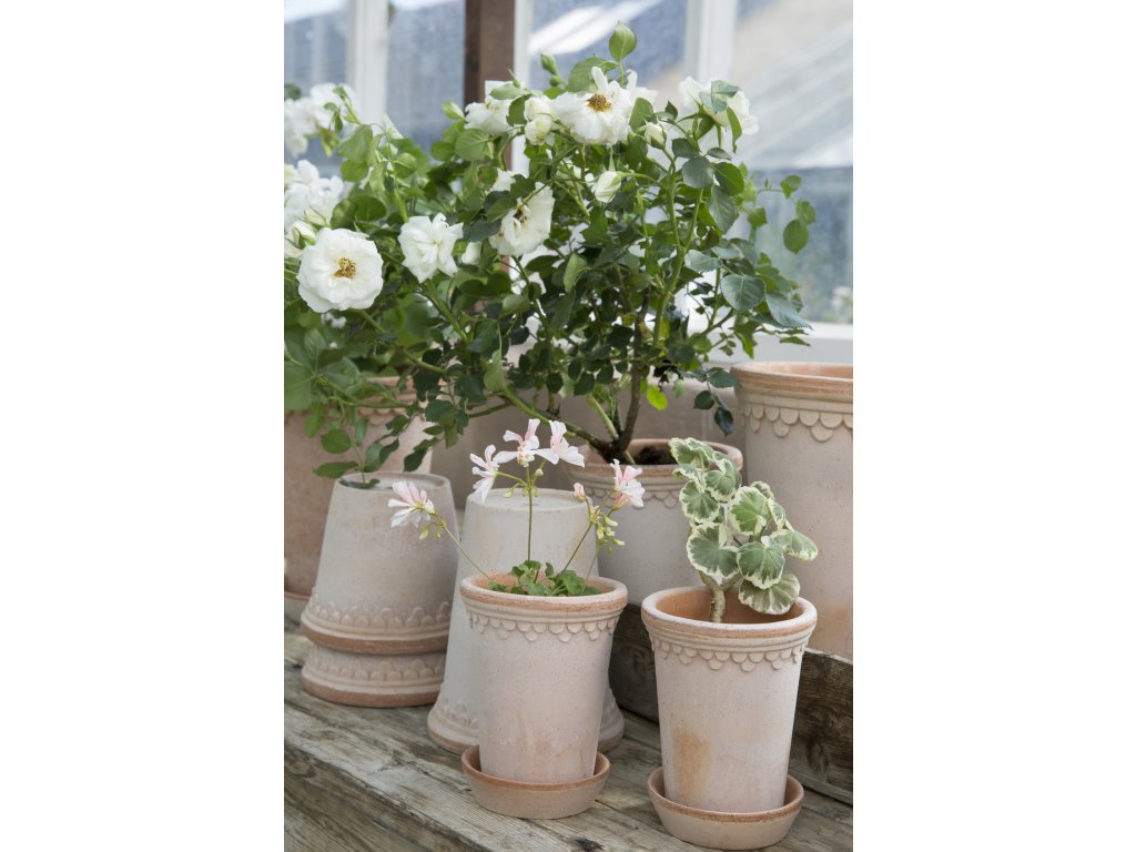 Každý kus je ručně vyroben z prvotřídní italské terakoty a ponechán v neglazovaném, přírodním stavu. Díky tomu je prodyšný, umožňuje rostlinám dýchat a lépe hospodařit s vlhkostí. Mírně porézní povrch časem získává jemnou patinu, která dělá z každého květináče jedinečný kousek. Květináč je mrazuvzdorný, vybavený odtokovým otvorem a podmiskou, a proto jej můžete používat celoročně – v bytě i venku. Stylově vynikne ve společnosti dalších květináčů z kolekce Bergs Potter, ale i jako samostatný akcent na parapetu, komodě či prostřeném stole.