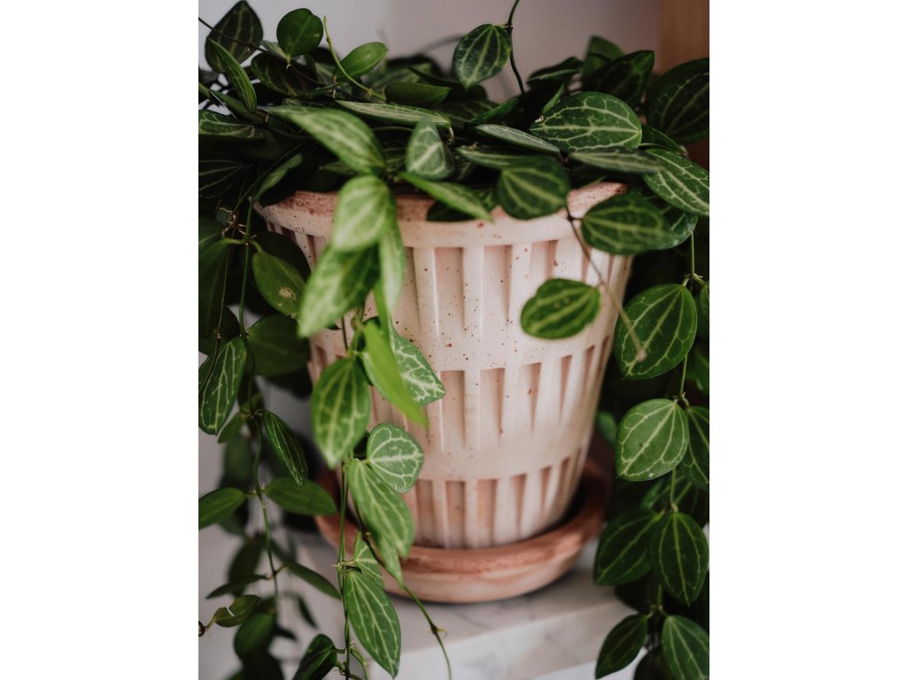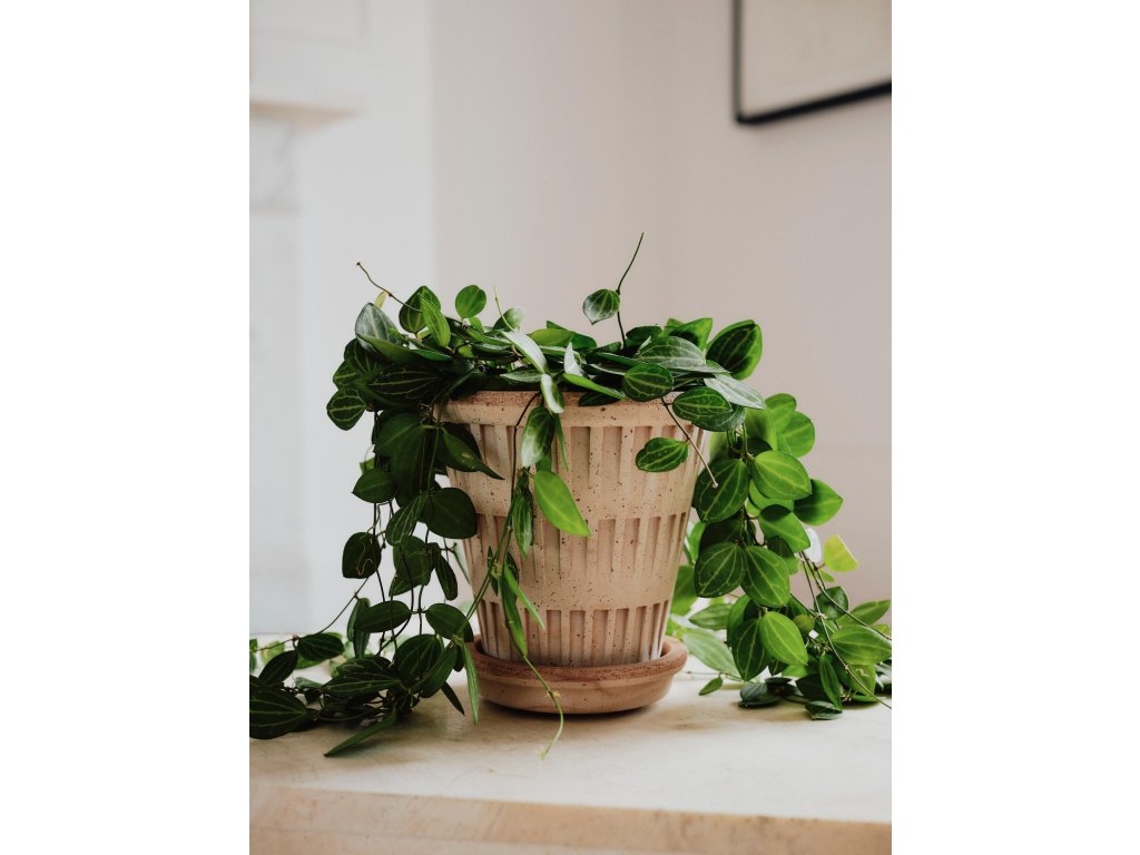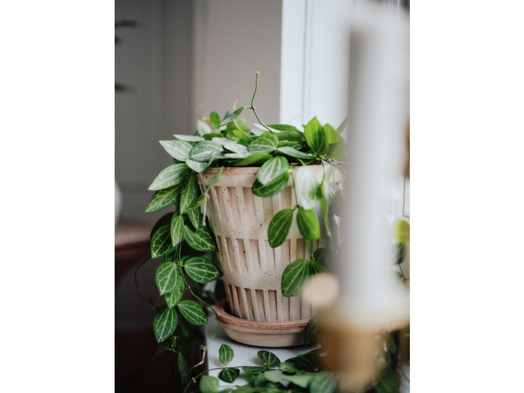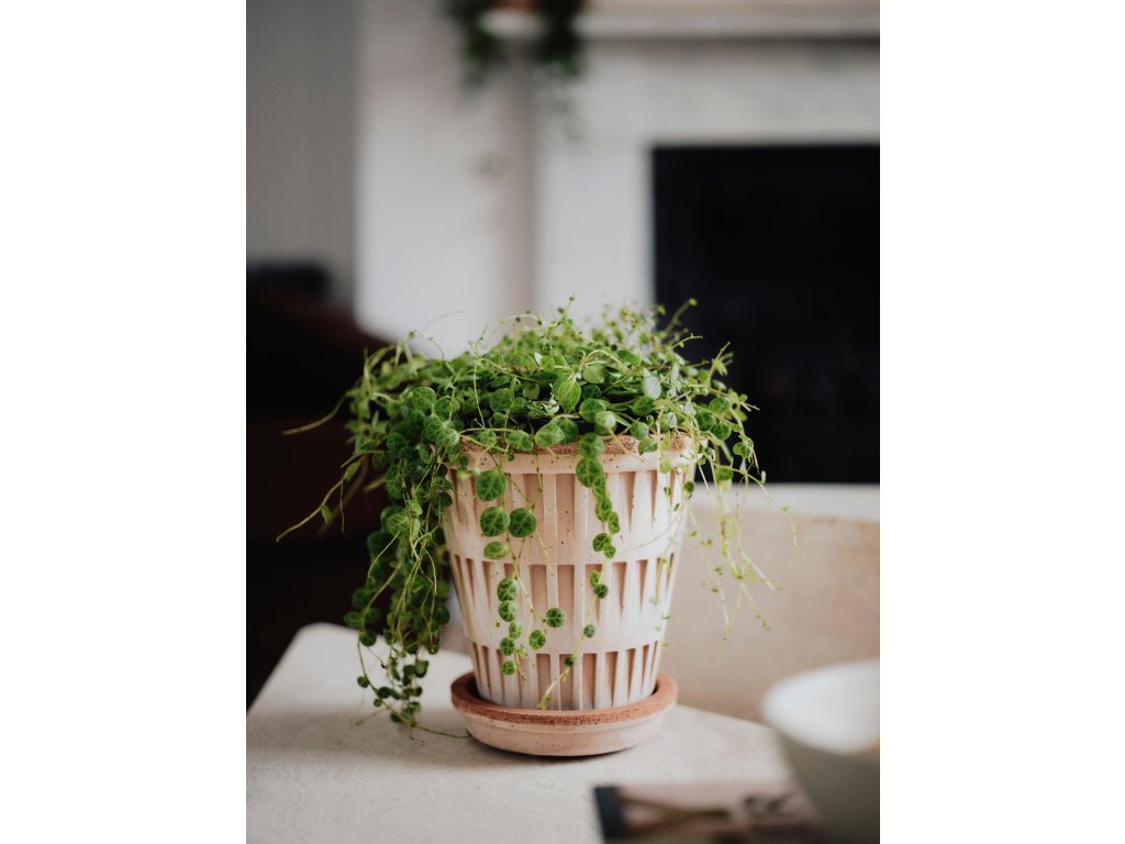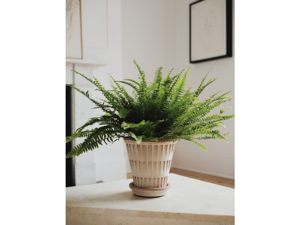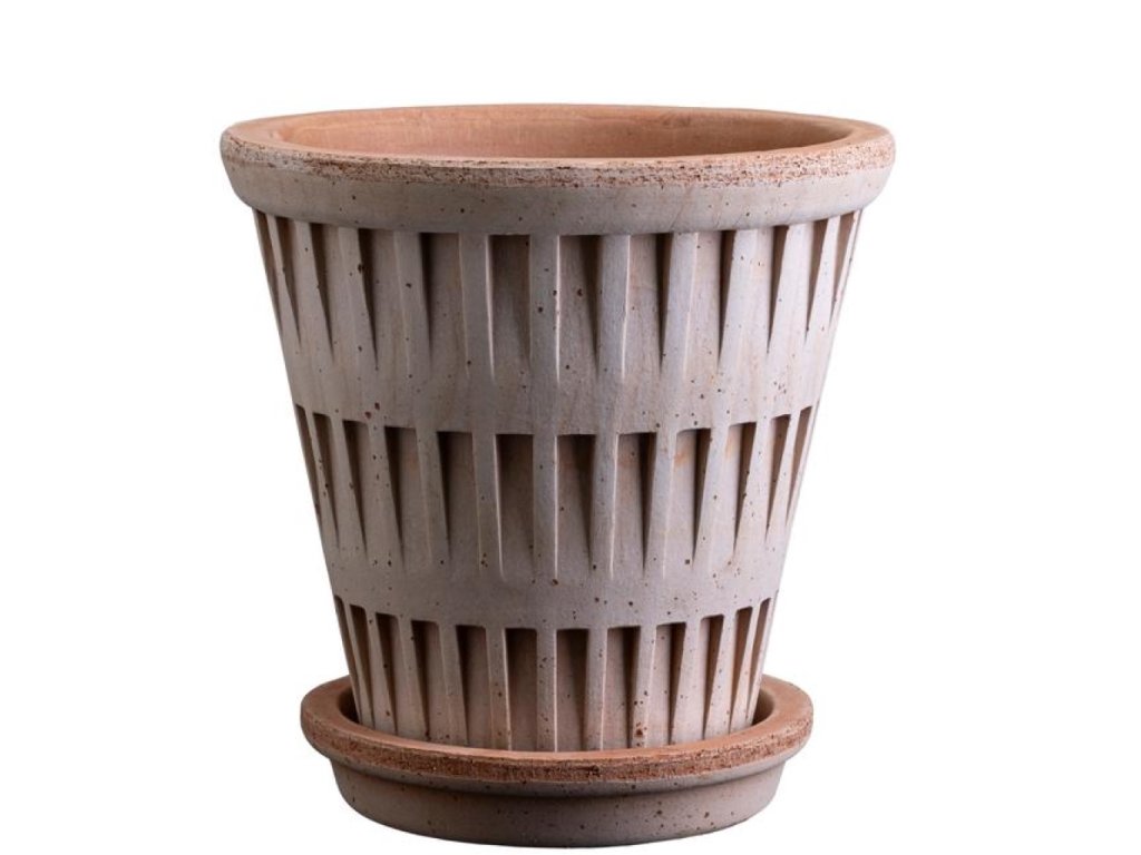 Terakotový květináč Pantheon od dánské značky Bergs Potter je ukázkou elegantního designu, který spojuje inspiraci antickou architekturou s funkcionalitou pro každodenní použití. Vertikální rytý vzor, který plasticky vystupuje z hladkého povrchu, dodává květináči strukturu a výraz připomínající monumentální sloupy římských chrámů, ale v minimalistickém a nadčasovém pojetí.