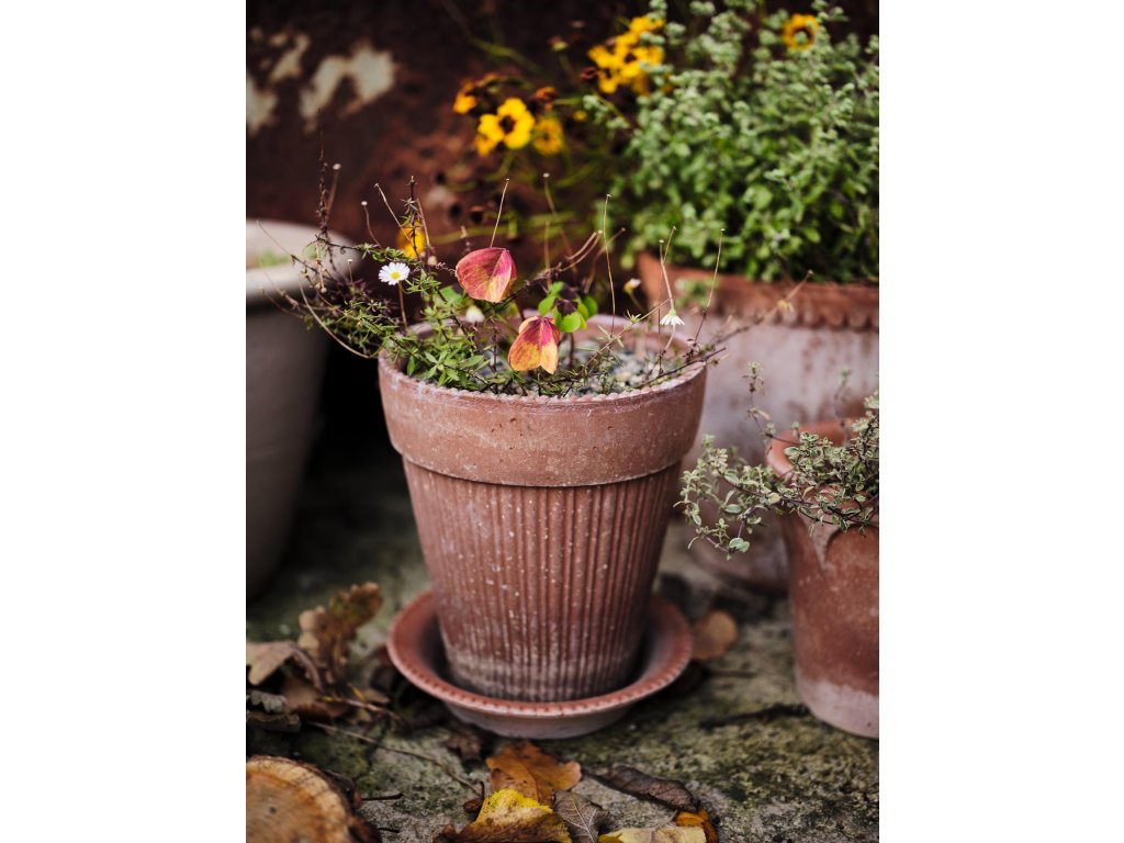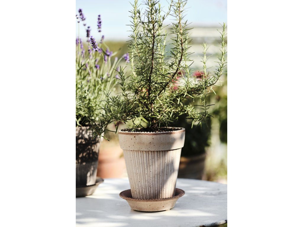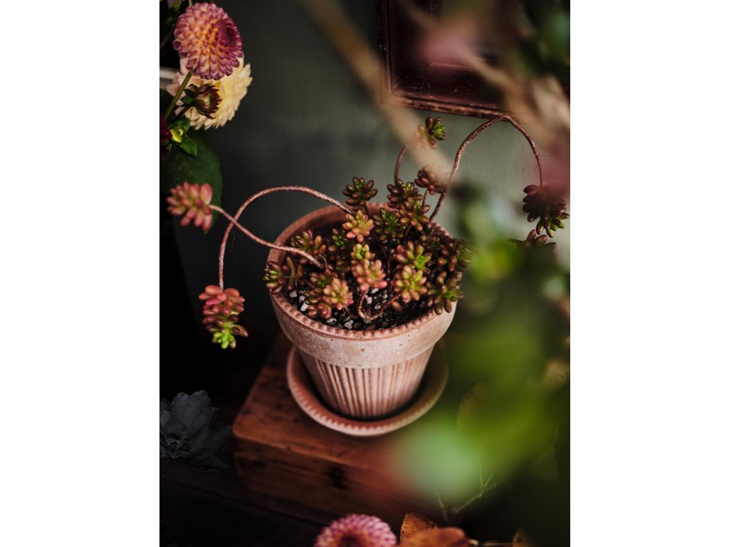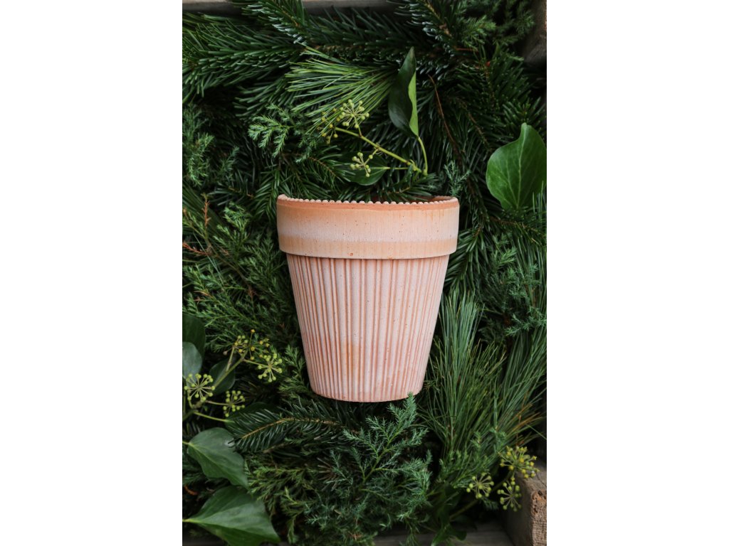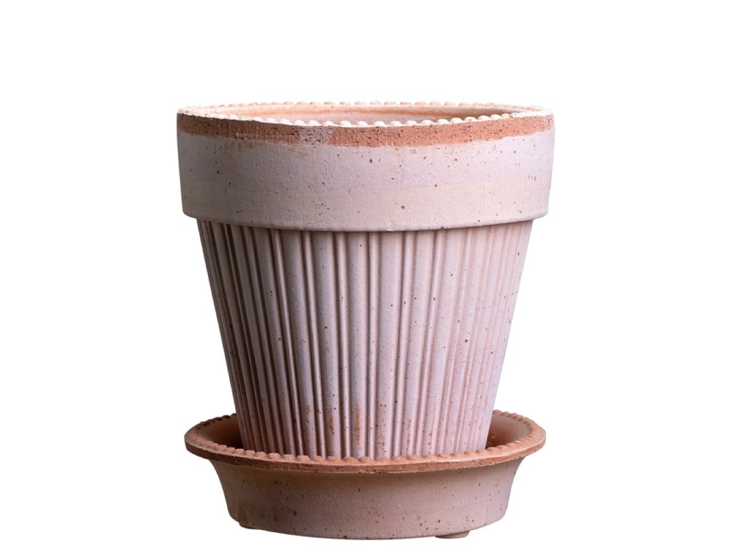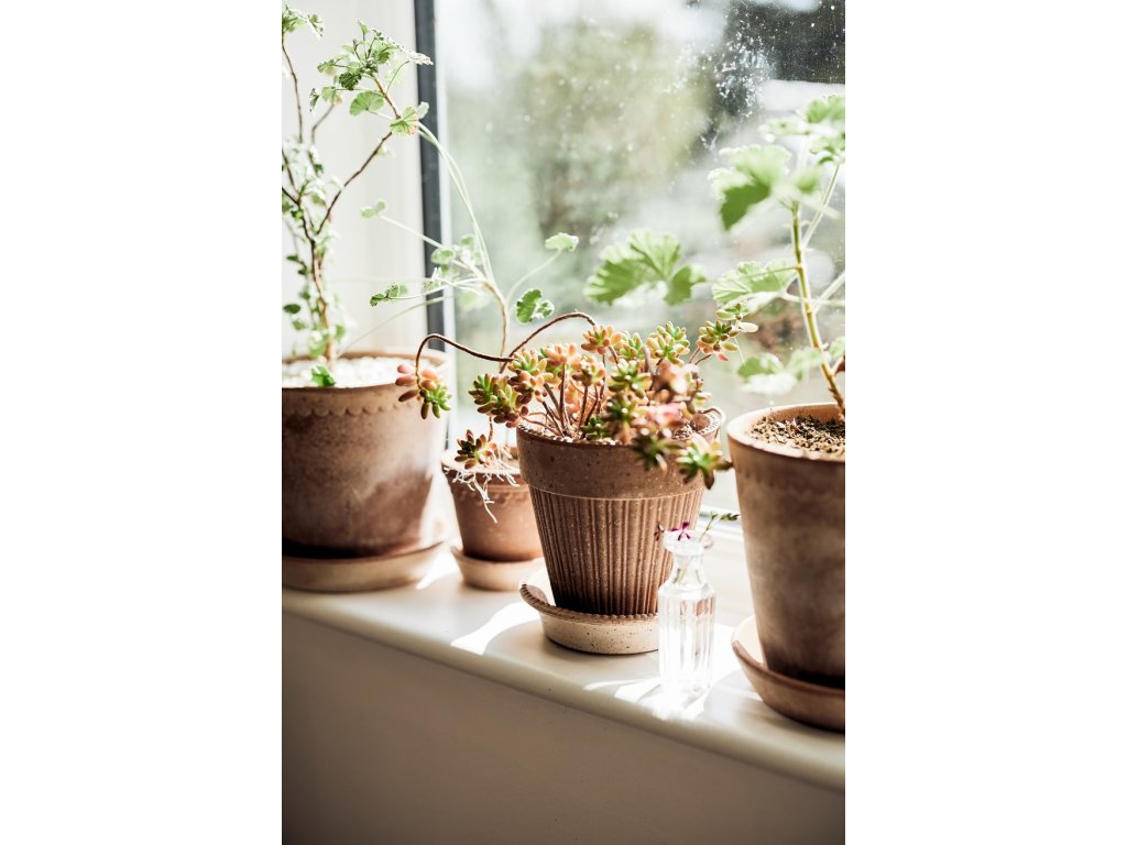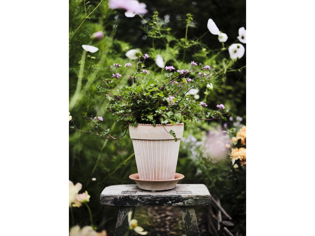 Terakotový květináč Simona od dánské značky Bergs Potter je poctou romantickému kouzlu pařížských uliček. Jeho elegantní tvar s jemným žebrováním a okrajem lemovaným drobnými perličkami čerpá inspiraci z historické estetiky pařížské čtvrti Montmartre, přesně tam, kde kdysi vznikl první návrh tohoto designu v hlavě Steffena Berga během toulky po bleších trzích.