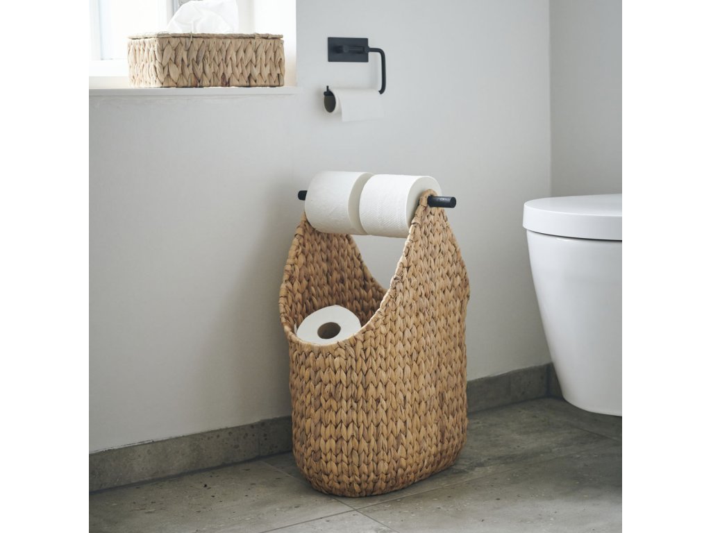 Udržujte váš prostor kolem toalety čistý a organizovaný. Důležitou součástí každé koupelny je úložný koš na toaletní papír. Proutěný koš s dřevěnou rukojetí značky House Doctor je ručně vyrobený z vodního hyacintu. Usnadňuje organizaci, je praktický a zároveň stylový. Využijete ho mimo jiné také jako koš na špinavé prádlo, ale poslouží skvěle i pro úschovu dek, plédů nebo ručníků. Dřevěné madlo slouží jako funkční držák pro pohodlnější přenášení.