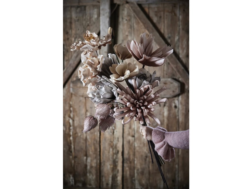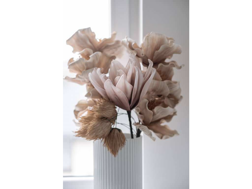 Vneste do svého domova nadčasovou krásu s umělou dekorativní květinou Happia v jemném narůžovělém odstínu. Tato nádherná květina je pečlivě vyrobena z vysoce kvalitní pěny, která zajišťuje její dlouhotrvající tvar a barvu bez nutnosti zalévání či slunečního světla. Je ideální i pro alergiky, protože neobsahuje pyl, a díky flexibilnímu stonku si ji snadno přizpůsobíte podle svých představ.