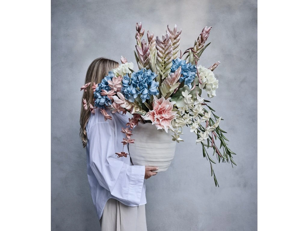 Vneste do svého domova nadčasovou krásu s umělou dekorativní květinou Happia v krémovém odstínu. Tato nádherná květina je pečlivě vyrobena z vysoce kvalitní pěny, která zajišťuje její dlouhotrvající tvar a barvu bez nutnosti zalévání či slunečního světla. Je ideální i pro alergiky, protože neobsahuje pyl, a díky flexibilnímu stonku si ji snadno přizpůsobíte podle svých představ.