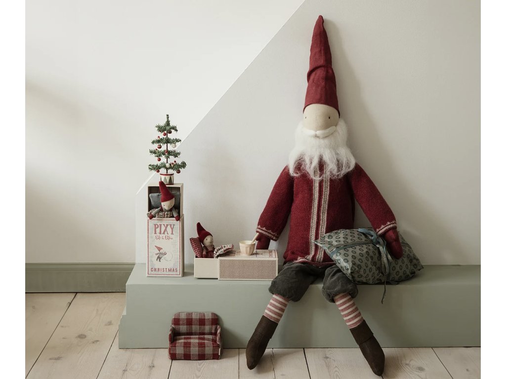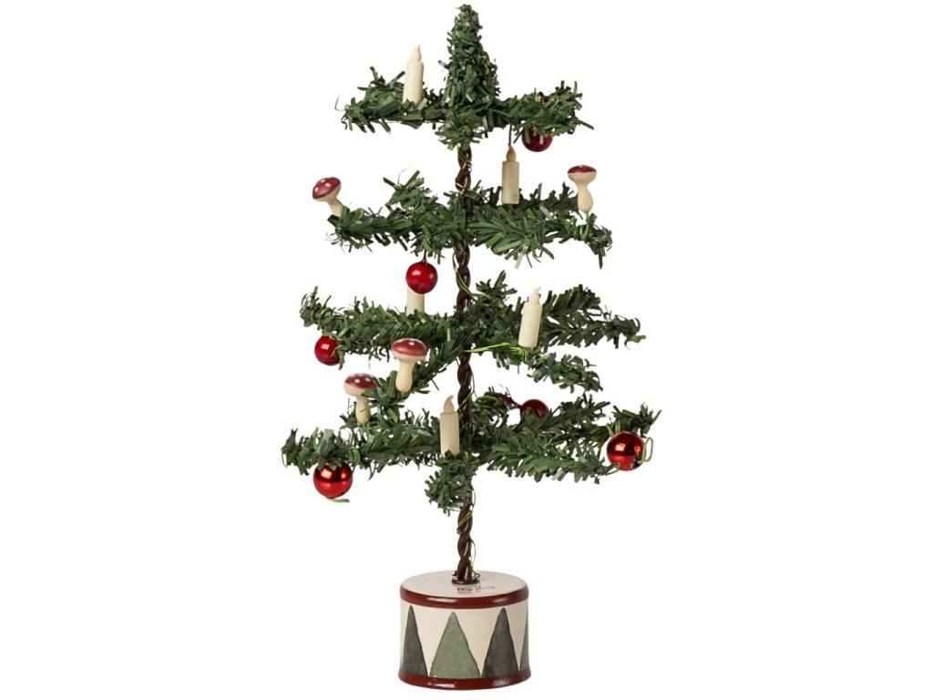 Stromeček zdobí jemné větvičky s drobnými svíčkami, červenými kouličkami a miniaturními houbami, které mu dodávají nostalgický půvab klasických Vánoc. Díky svému detailnímu zpracování působí jakoby pocházel z pohádky – přesně tak, jak to umí jen svět Maileg. Každá větvička je ručně tvarovaná, aby působila přirozeně, a pečlivě zvolená barevnost ladí s ostatními vánočními doplňky.