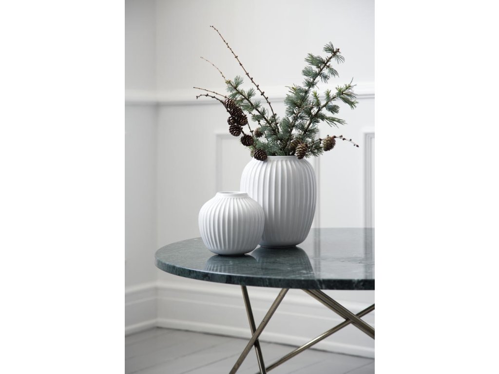 Kolekce Hammershøi dánské značky Kähler Design se stala velmi oblíbenou pro své typické jemné rýhování, za kterým stojí norský designér Hans-Christian Bauer. V kolekci objevíte nádherné vázy různých barev a velikostí, které se vzájemně perfektně doplňují a díky tomu můžete vytvořit jedinečnou kombinaci pro váš domov. Tato ikonická váza dodá vašemu domovu tu pravou ryzí skandinávskou eleganci. Váza vyniká díky své nadčasové glazuře, typickému rýhování a harmonickému tvaru. Umístěte vázu spolu s čerstvými květinami do centra dění, kde si spolehlivě získá pozornost všech přítomných hostů. Samotná váza v kombinaci s ostatními doplňky Kähler bude nepřehlédnutelným designovým prvkem ve vašem interiéru.