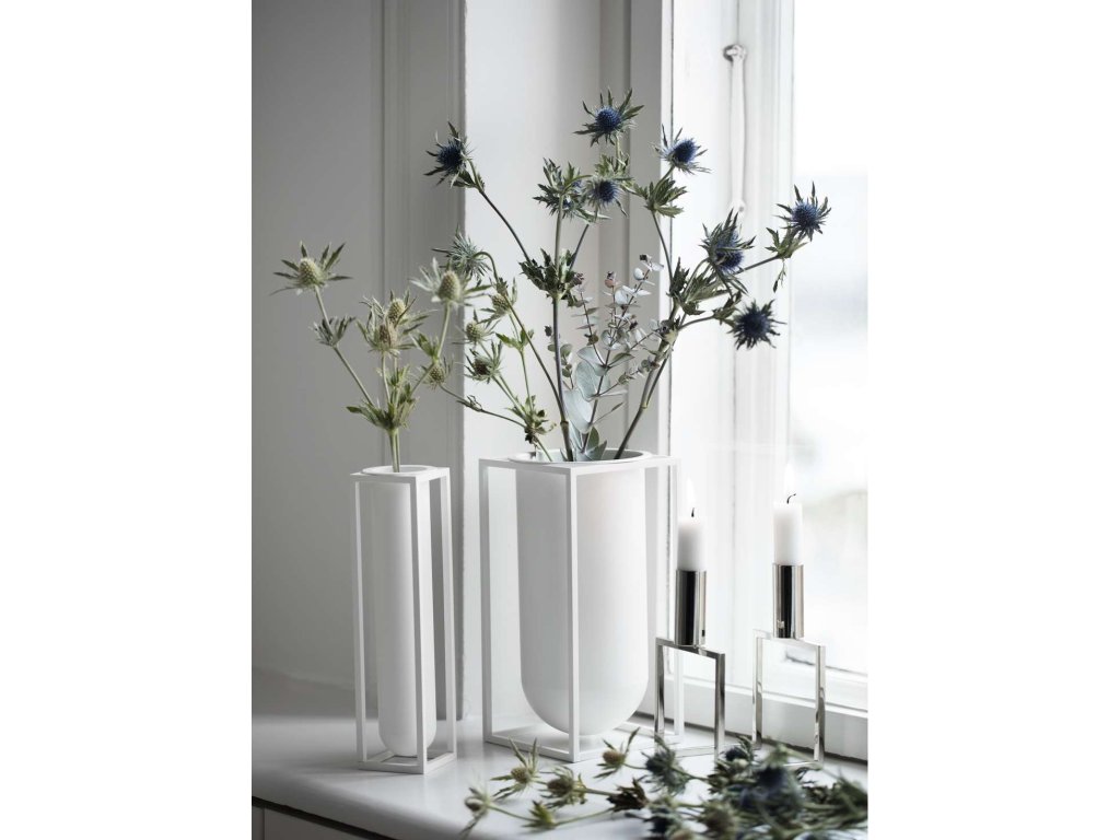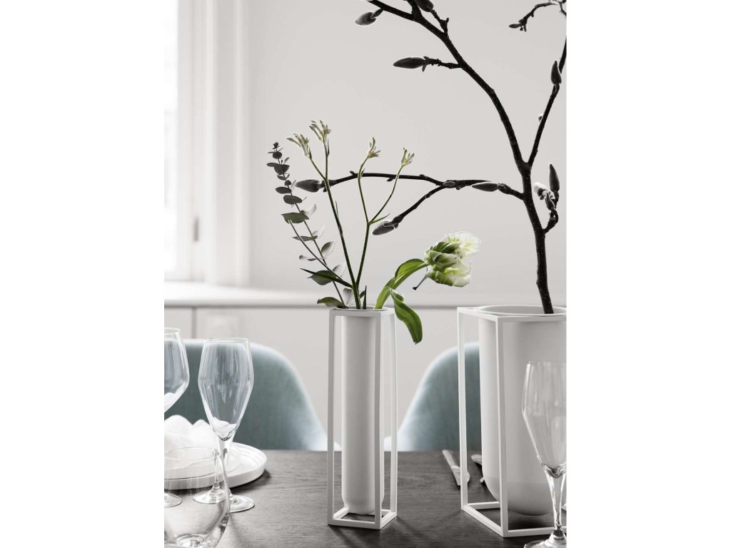 Váza Kubus Flora, od dánského bratrského dua By Lassen, vznikla již v roce 2018 a navrhnul ji sám Søren Lassen. Váza vyniká svými čistými liniemi a uceleným designem a je jako stvořená pro podmanivou krásu květin. Jedinečnost této ikonické vázy spočívá v kombinaci pevného ocelového rámu, jemných rovných linií a kulaté nádoby, což dává váze na zajímavosti. Pokud váze dopřejete živé či sušené květy, obzvlášť ty s dlouhým stonkem, dosáhnete tak kouzelného stylingu, který ocení každý.