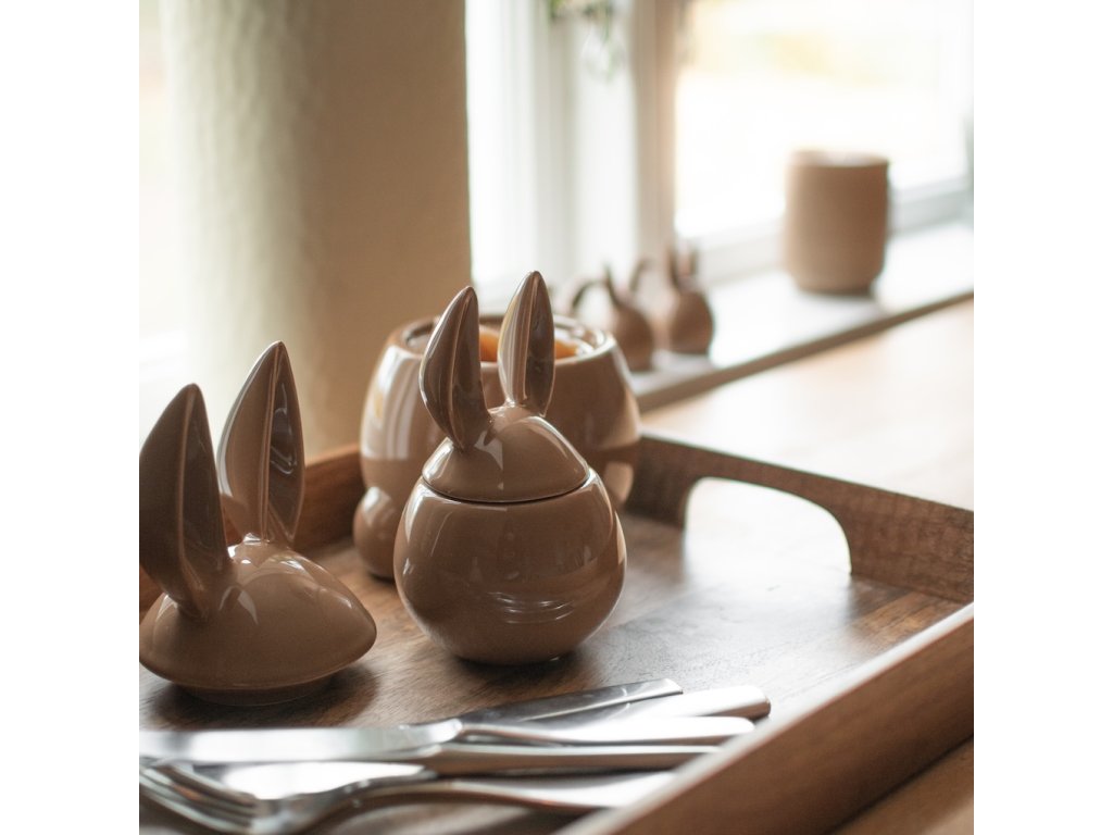 Keramická dóza Eating Rabbit Shiny Nougat je jako stvořená pro jarní období a Velikonoce. Její tvar inspirovaný králíčkem nejen krásně zapadne do sváteční výzdoby, ale také poslouží jako praktický úložný prostor. Můžete do ní uložit čaj, kávu, cukr, ale také oříšky, sušenky či jiné dobroty. Víčko s roztomilými králičími oušky navíc ukryje sladkosti pro děti nebo jakékoliv drobnosti, které chcete mít po ruce.