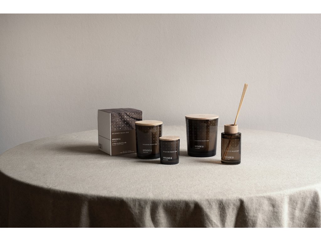 HYGGE znamená ÚTULNO. Nové složení, nová vůně, která dodá vašemu domovu hřejivou a útulnou atmosféru. Užijte si dokonalou kombinaci černého čaje s lístky máty a sušených jablíček posypaných skořicí.