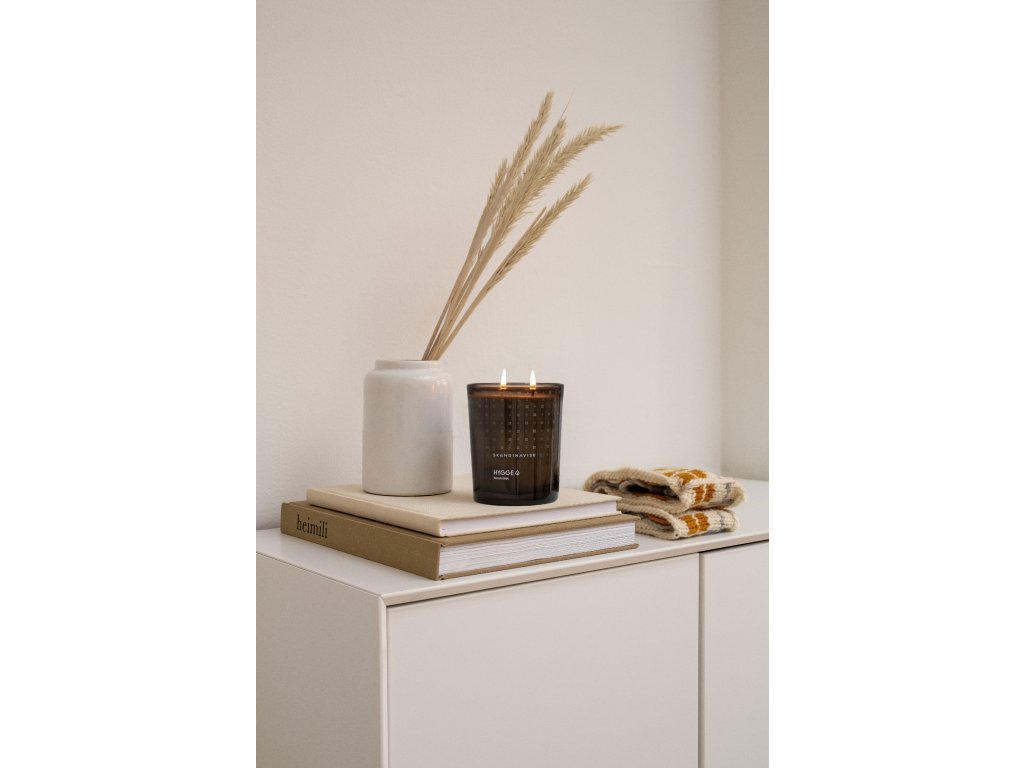Skleněný obal svíčky je vyrobený z recyklovaných materiálů. Průhledné sklo v tmavě hnědém odstínu je naplněno rostlinným řepkovým voskem se dvěma knoty ze 100% bavlny. Ty poskytují intenzivnější a rovnoměrnější zážitek z hoření. Svíčka se rychleji zahřívá a uvolňuje více vůně, což umocňuje atmosféru v místnosti. Svíčku s 350 g uvítáte ve větších prostorách, kde může plně rozvinout svou omamnou vůni. Navíc dva plamínky přidávají vizuální potěšení a vytvářejí osvětlení, které zvyšuje pocit útulnosti.