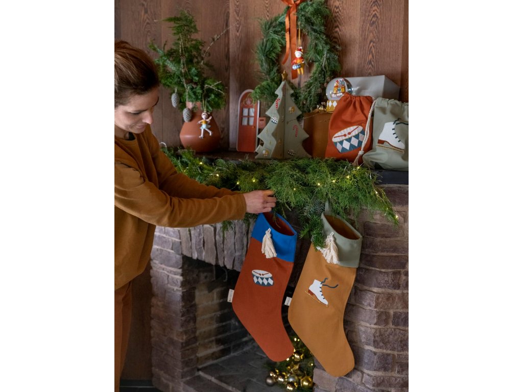 Tento roztomilý látkový stromeček se stane hravou dekorací, která potěší nejen vaše ratolesti. Stromeček se zlatou hvězdou na špici je vyrobený ze 100% organické bavlny a zdobí ho precizní, ručně vyšívané vánoční motivy bubínku, ozdobiček, srdíček a cukrovinek. Zakomponujte stromek jako součást kouzelného zátiší obydlí pro skřítky nebo jej vystavte na parapet či poličku do dětského pokoje a vytvořte tak veselou vánoční atmosféru.