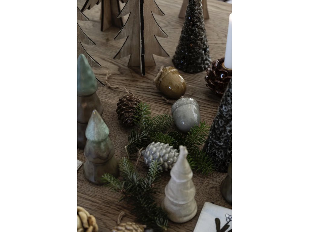 Tento drobný kousek se skvěle hodí nejen během Vánoc, ale i v podzimní sezóně, kdy doplní aranžmá z listí, dýní a svíček. V zimě zase rozsvítí sváteční výzdobu a přinese do interiéru příjemný přírodní akcent. Kombinací několika odstínů nebo propojením s keramickými žaludy vytvoříte harmonickou kompozici, která dýchá tradicí a severskou elegancí.