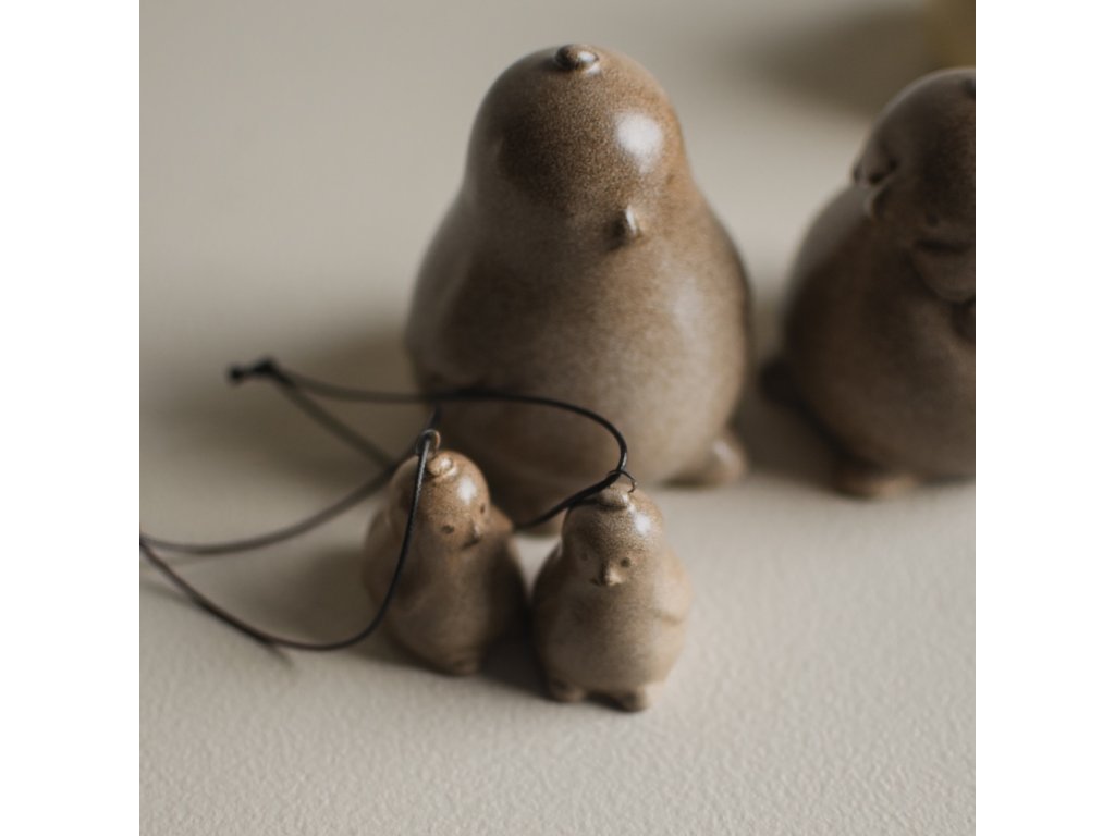 Kuřátko je vyrobené z keramiky s matnou glazurou v béžovém odstínu, která podtrhuje jeho čistou siluetu. Křidélka i zobáček jsou naznačeny střídmě, bez zbytečných prvků, což mu dodává minimalistický výraz.